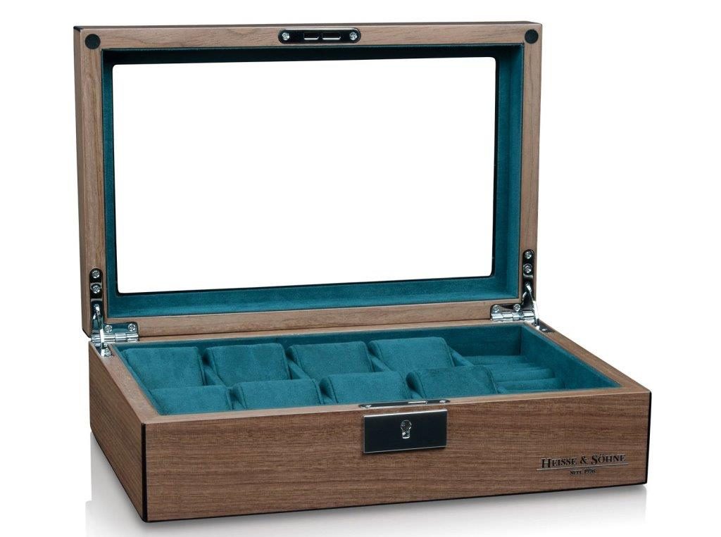 Box na hodinky Heisse & Söhne Borneaux 8+ 70019-181 je luxusné riešenie na uloženie až ôsmich hodiniek, ako aj prsteňov a manžetových gombíkov.