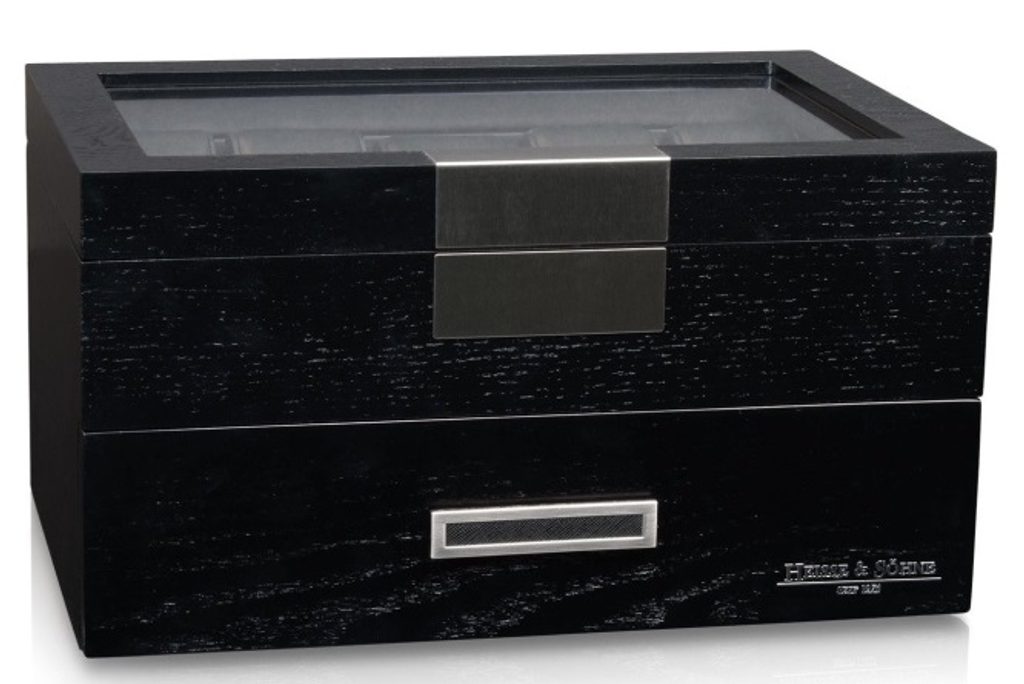 Elegantný box na hodinky Heisse & Söhne Monteray 20 70019-179 na 20 hodiniek so skleneným vekom.