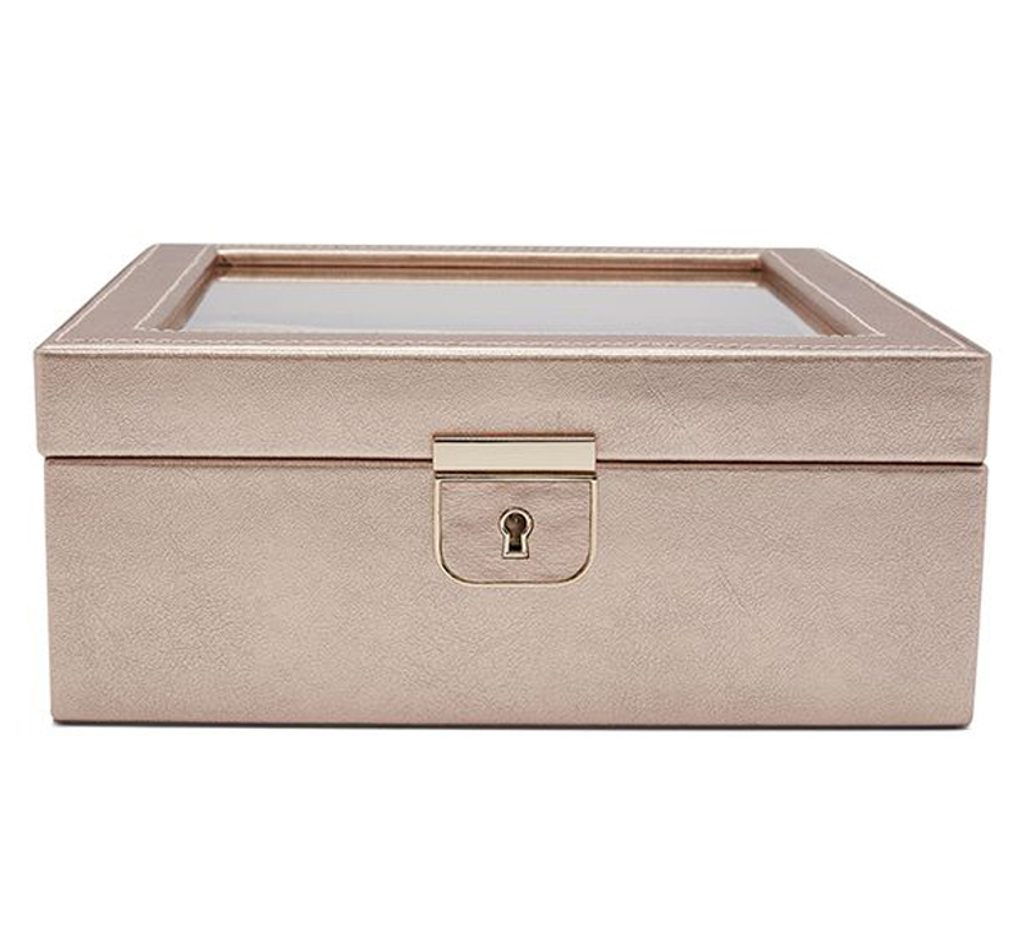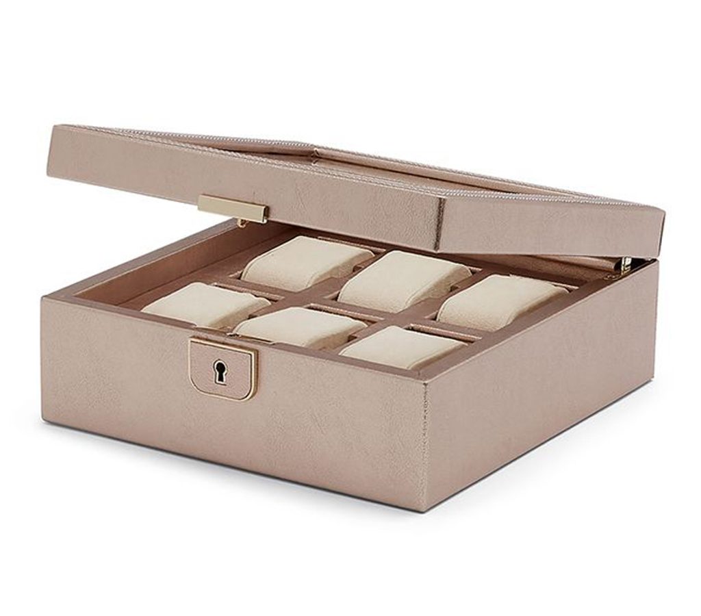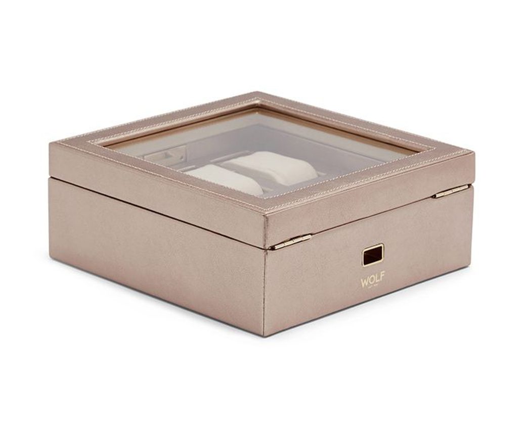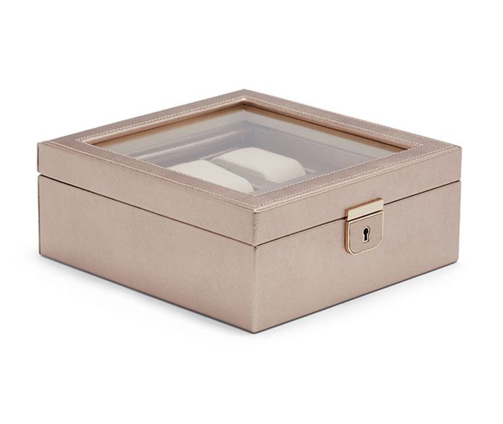 Wolf Palermo 213816 je precízne spracovaná škatuľka z jemnej textúrovanej kože, uzamykateľná. Zlatý zámok dodáva výrobku nádych elegancie. Krabička má aj vstup pre kábel pre prípad, že by ste potrebovali nabiť svoje inteligentné hodinky.