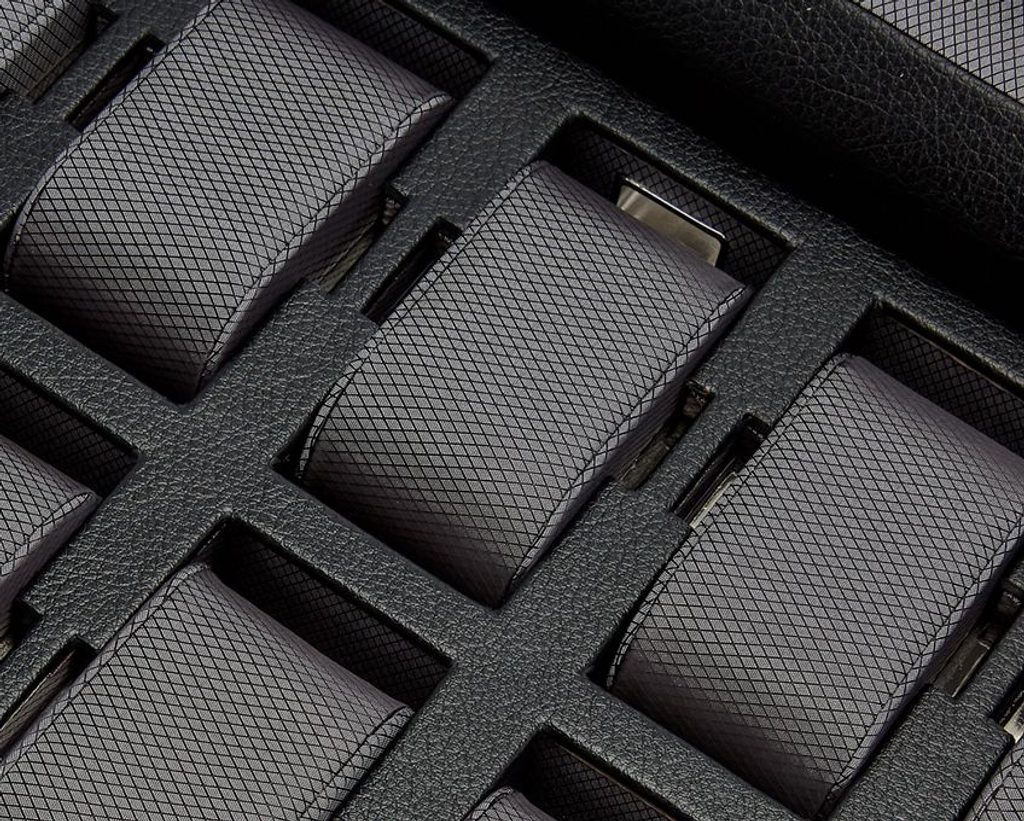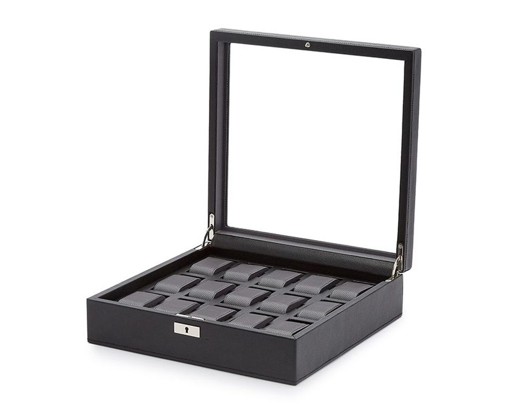 Elegantný box Wolf Viceroy 466302 na 15 hodiniek je veľmi kvalitne spracovaný s povrchom z vegánskej kože. Hodinky si môžete prezerať cez sklenené uzatvárateľné veko. Krabička má aj vstup pre kábel USB na prípadné nabíjanie inteligentných hodiniek.