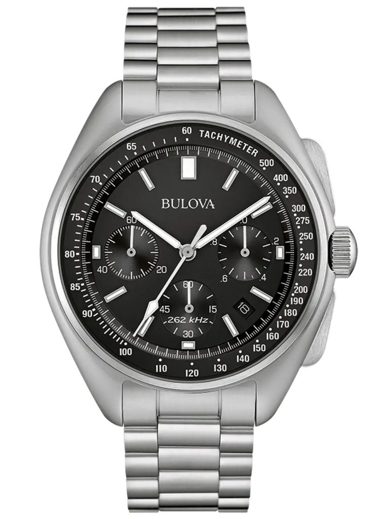 Puzdro hodiniek Bulova 96B258 Lunar Pilot Chronograph je vyrobené z ušľachtilej ocele a jeho dizajn vychádza z legendárnych hodiniek Bulova Chronograph, použitých astronautom Scottom pri misii Apollo 15. Vnútri nájdeme vysoko výkonný quartzový UHF (Ultra High Frequency) strojček, pracujúci na frekvencii 262 kHz. To je zhruba 8x viac, než u bežných quartzových strojčekov (32768 Hz). Vďaka tomu je možné dosiahnuť extrémnu presnosť chodu s odchýlkou približne 10s za rok! Tento strojček ďalej ponúka aj funkciu stopiek.