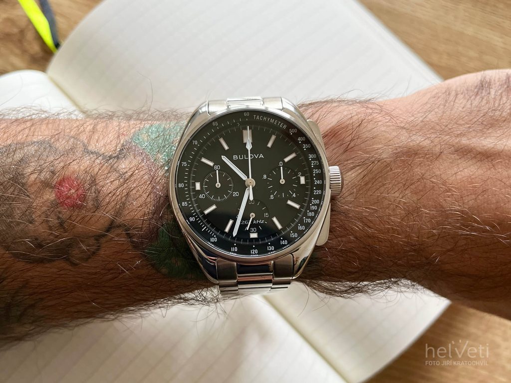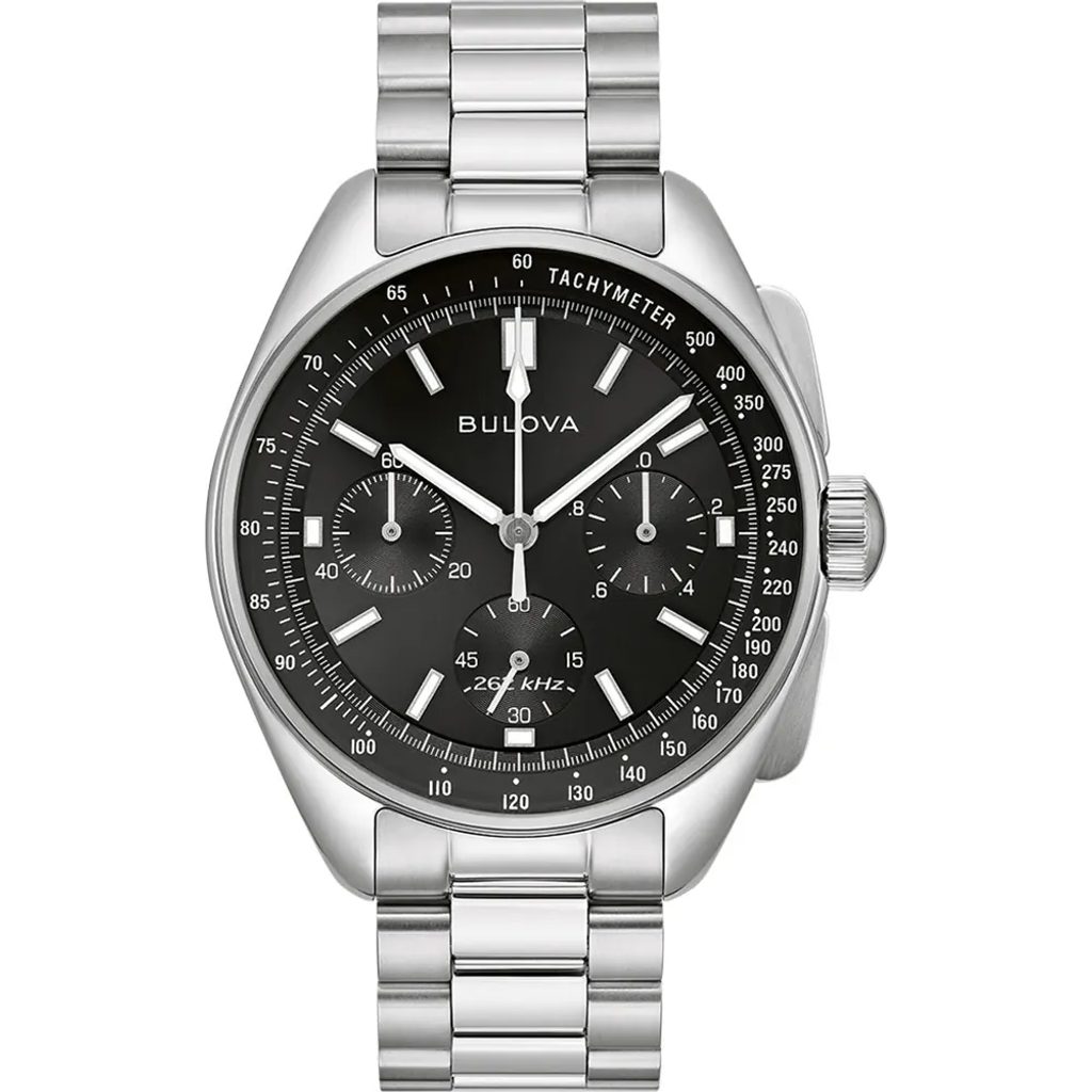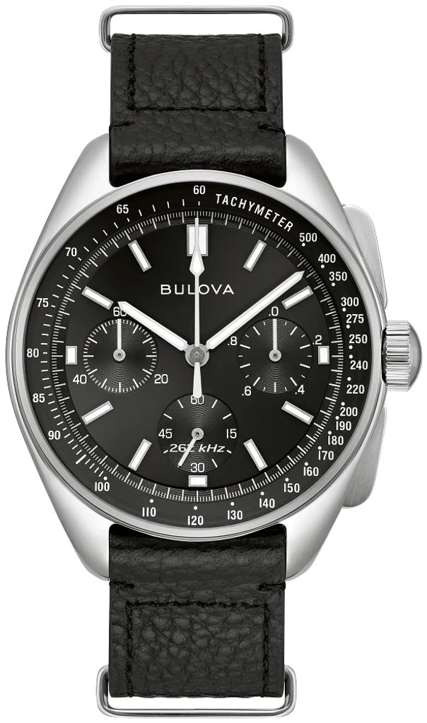 Puzdro hodiniek Bulova 96K111 Lunar Pilot Chronograph je vyrobené z nehrdzavejúcej ocele a jeho dizajn vychádza z legendárneho chronografu Bulova, ktorý používal astronaut Scott na misii Apollo 15. Vo vnútri nájdeme vysoko výkonný quartzový strojček UHF (Ultra High Frequency) pracujúci na frekvencii 262 kHz. To je približne 8-krát viac ako frekvencia bežných quartzových strojčekov (32768 Hz). To umožňuje dosiahnuť extrémnu presnosť chodu s odchýlkou približne 10s za rok! Tento strojček ponúka aj funkciu stopiek.