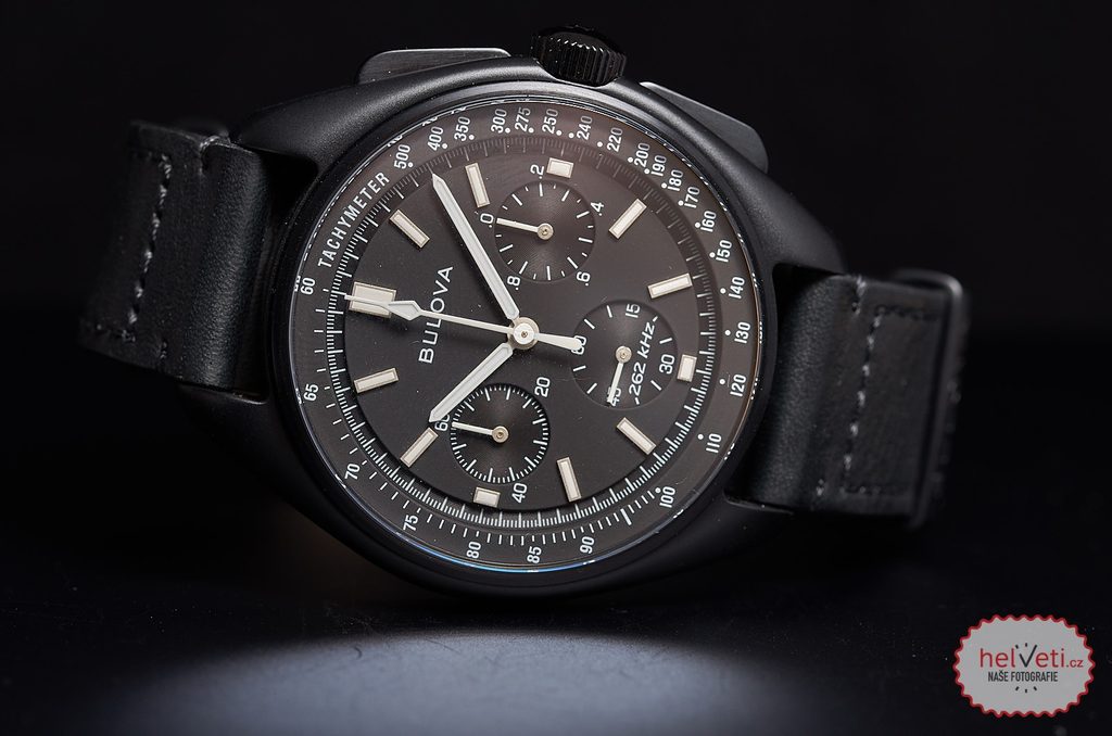 Puzdro hodiniek Bulova 98A186 Special Edition Lunar Pilot Chronograph je vyrobené z ušľachtilej ocele s PVD úpravou a jeho dizajn vychádza z legendárnych hodiniek Bulova Chronograph, použitých astronautom Scottom pri misii Apollo 15. Vnútri nájdeme vysoko výkonný quartzový UHF (Ultra High Frequency) strojček, pracujúci na frekvencii 262 kHz. To je zhruba 8x viac, než u bežných quartzových strojčekov (32768 Hz). Vďaka tomu je možné dosiahnuť extrémnu presnosť chodu s odchýlkou približne 10s za rok! Tento strojček ďalej ponúka aj funkciu stopiek.