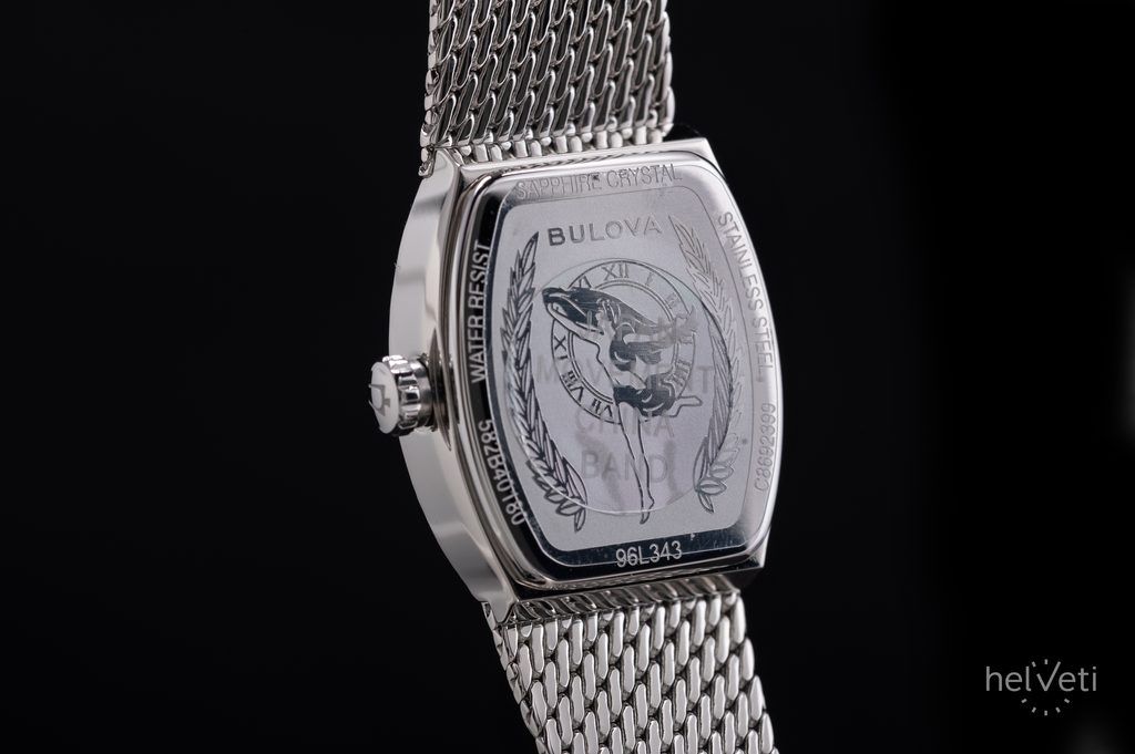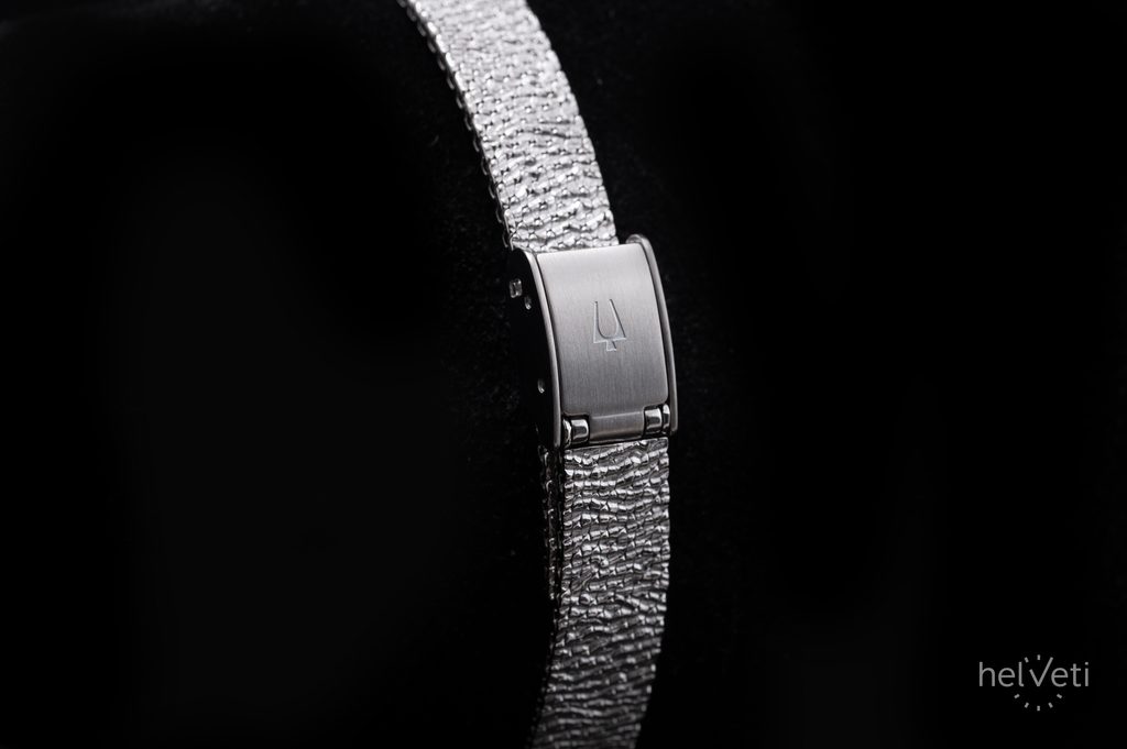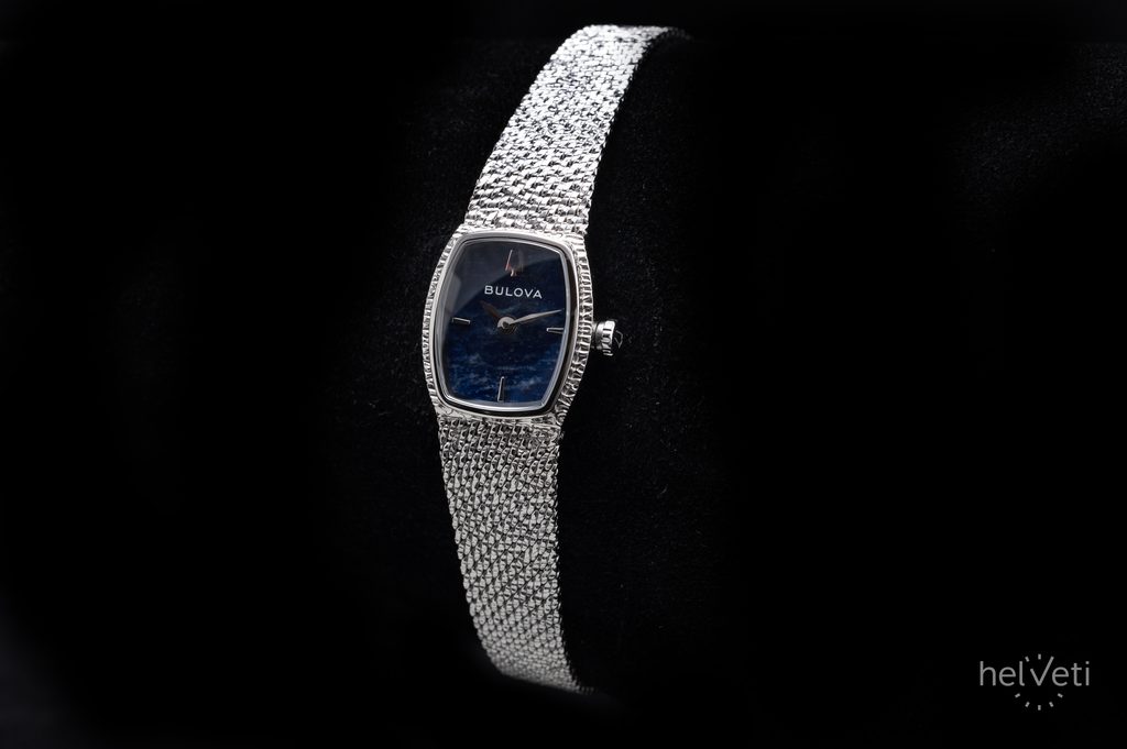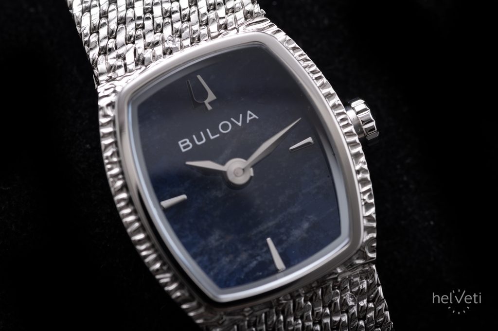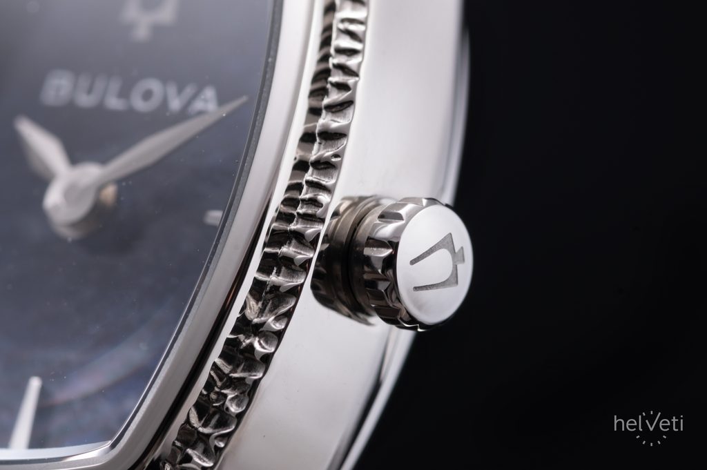 Ďalším výrazným prvkom hodiniek je ciferník v modrých odtieňoch, ktorý je vyrobený zo sodalitu. Každý kus je tak vďaka jedinečnému vzoru kameňa originálom. Ciferník zdobia aplikované indexy na pozíciách hodín a jemné ručičky v striebornom odtieni, doplnené ikonickým logom ladenia Bulova. Chráni ho kupolovité zafírové sklíčko s antireflexnou vrstvou, ktoré zaručuje dokonalú čitateľnosť, ako aj vysokú odolnosť proti poškriabaniu.