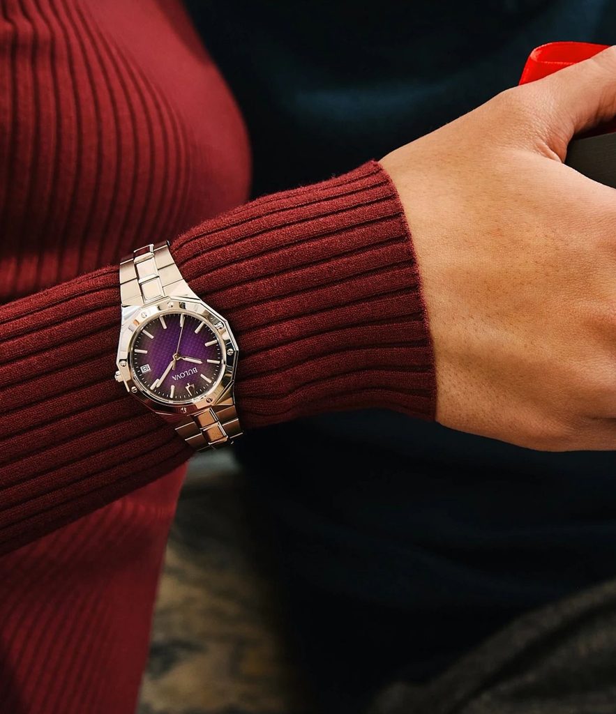Hodinky Bulova Prestige 96M168 sú modelom z radu Bulova Classic. Hodinky zaujmú svojím výrazným športovo-elegantným štýlom a fialovým textúrovaným ciferníkom, ktorý podčiarkuje pôvab hodiniek. Dvanásťstranné lunetové puzdro dopĺňa článkový oceľový náramok ukončený motýľovou sponou.