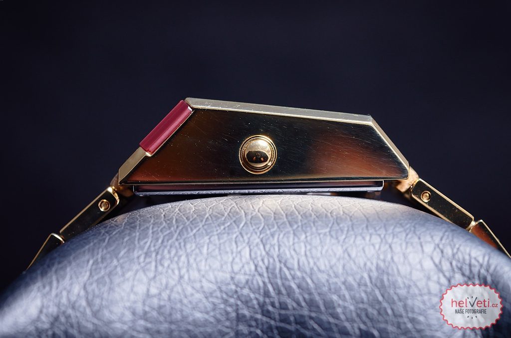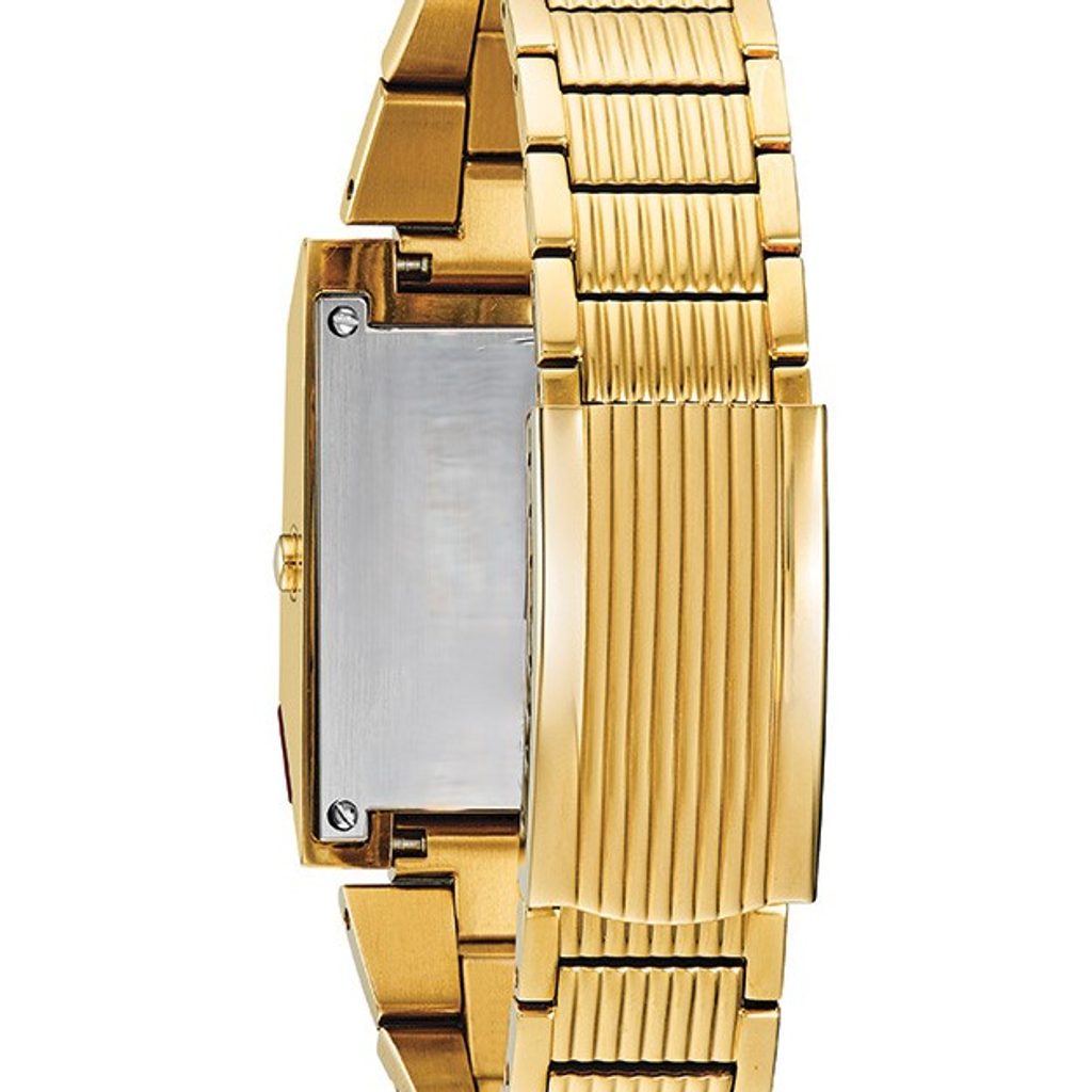 Puzdro aj náramok hodiniek je vyrobené z ocele so zlatou PVD úpravou povrchu. Model je okrem funkcie času vybavený duálnym časom a zobrazením dátumu a dňa. Tieto informácie je možné zobraziť po stlačení tlačidla na pravej strane puzdra na červenom LED displeji. Vďaka veľkosti puzdra, šírke 31 mm a výške 40 mm, sú hodinky ideálnym doplnkom pre väčšinu zápästí. Vodotesnosť hodiniek je 30 m, znesú teda náhodný styk s vodou počas dažďa a umývania rúk.