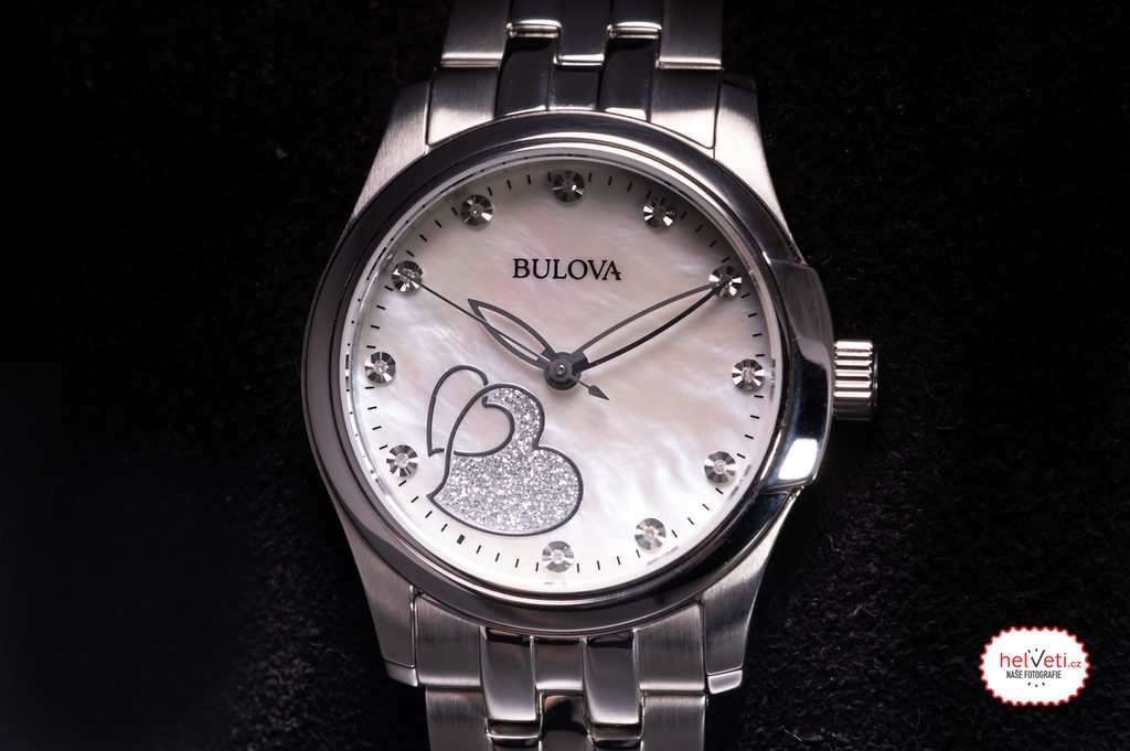 Svetlý perleťový ciferník, ktorý je podkladom plastických indexov a jedenástich diamantov na pozíciách hodín, je chránený minerálnym sklíčkom. Skeletónové ručičky hodiniek umožňujú priehľad na krásny ciferník a tiež na motív srdca, vyobrazený medzi indexmi 6 a 8. Puzdro aj náramok hodiniek, skladajúci sa z jemných článkov, sú vyrobené z nerezovej ocele. Vodotesnosť tohto modelu je 30 m, hodinky tak znesú náhodný kontakt s vodou pri umývaní rúk a daždi. Vzhľadom na priemer puzdra 33 mm sú vhodnou voľbou aj pre menšie dámske zápästia.