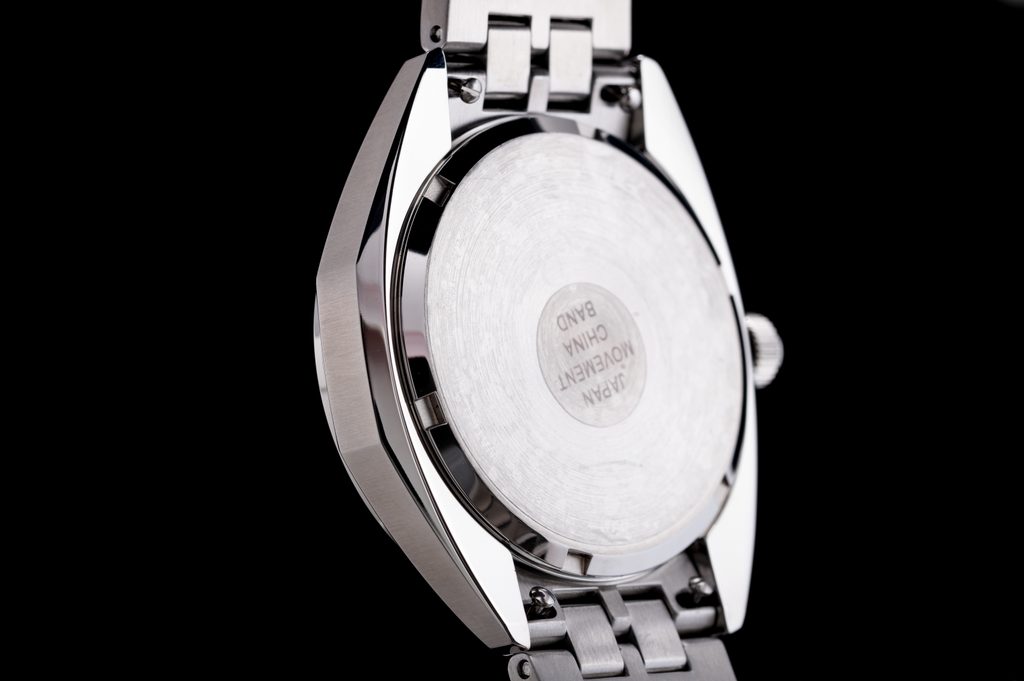 Dizajn hodiniek verne odráža charakter pôvodného modelu, či už ide o súdkovité puzdro s výraznými fazetami alebo typické klenuté zafírové sklíčko, ktoré je odolné proti poškriabaniu a dodáva hodinkám zaujímavý rozmer. Strieborný ciferník so slnečným efektom dopĺňa sivý kruh s minútovými značkami a výrazné aplikované indexy na pozíciách hodín spolu s paličkovými ručičkami. Ručičky a hodinové body sú opatrené luminiscenčnou vrstvou, ktorá zabezpečuje lepšiu čitateľnosť pri prechode do tmy.