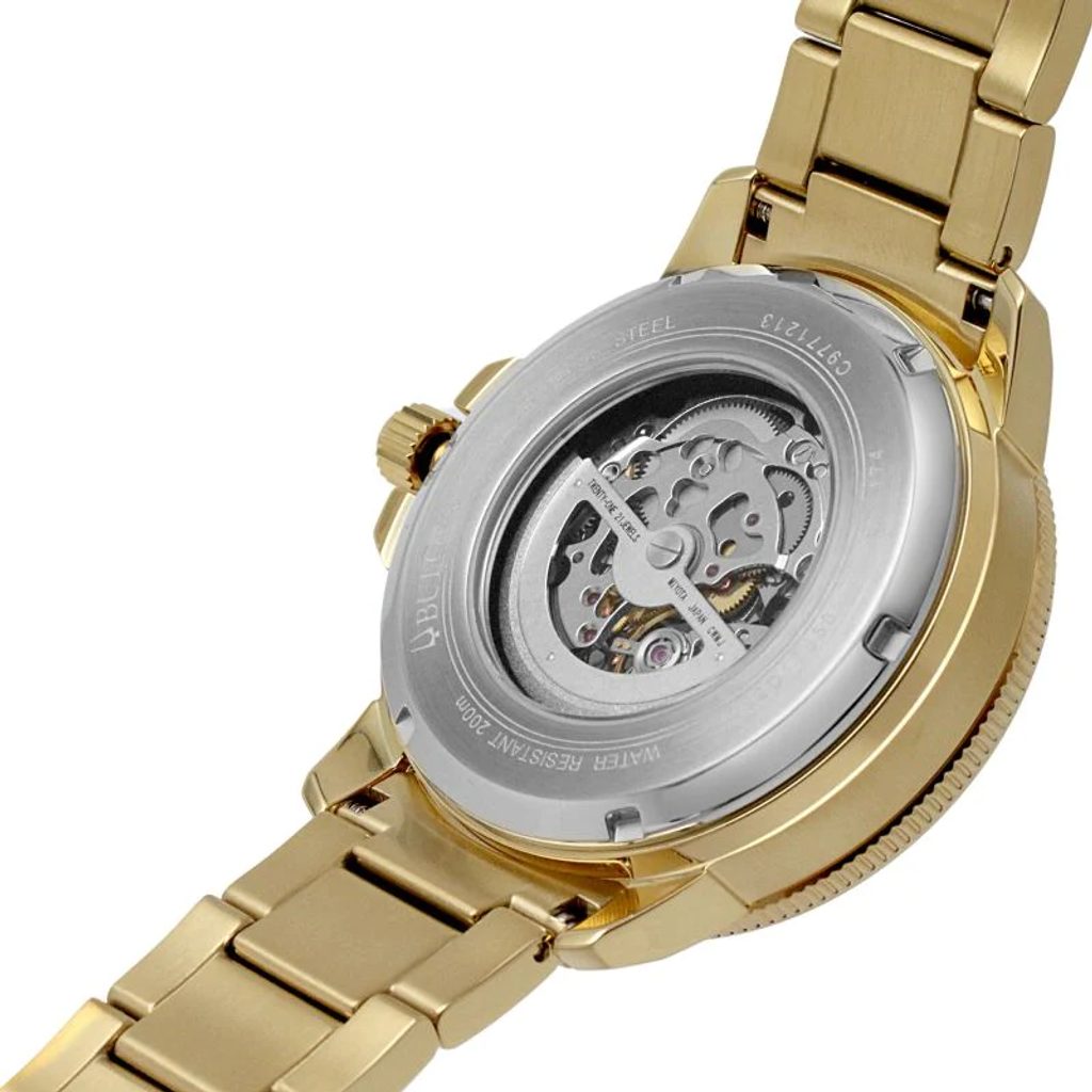 Čierny ciferník s polopriehľadným stredom, ktorý podčiarkuje reliéfne číslice na pozíciách hodiniek, chráni klenuté minerálne sklíčko. Okrem tvaru samotného puzdra je nezameniteľným prvkom aj pohľad na zotrvačník strojčeka na siedmej hodine. Zlaté ručičky hodiniek aj indexy sú luminiscenčné, čo uľahčuje ich čítanie pri slabom osvetlení. Hodinky poháňa mechanický strojček Miyota 8N26 s automatickým naťahovaním a rezervou chodu približne 42 hodín. Pohyb je možné sledovať aj cez sklenený spúšťací mechanizmus. Puzdro hodiniek a náramok sú vyrobené z nehrdzavejúcej ocele so zlatou PVD povrchovou úpravou. Vodotesnosť hodiniek je 200 m, takže ich nemusíte odkladať ani pri plávaní.