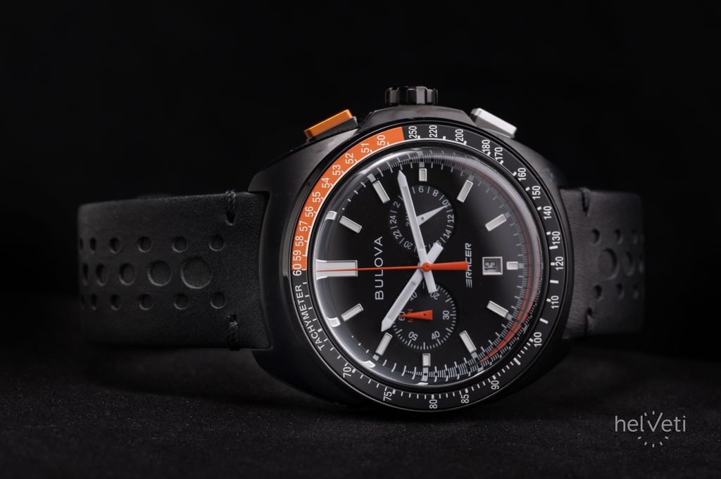 Hodinky Bulova Racer Chronograph 98B428 v prvom rade zaujmú dizajnom, ktorý nezaprie inšpiráciu vo svete motoristického športu. Hodinky Racer Chronograph sú postavené na histórii značky v motoristickom športe - od pretekov minikár až po najvyššie úrovne motoristických pretekov - a sú štýlovým vyjadrením pretekárskej histórie a vášne značky pre rýchlosť.