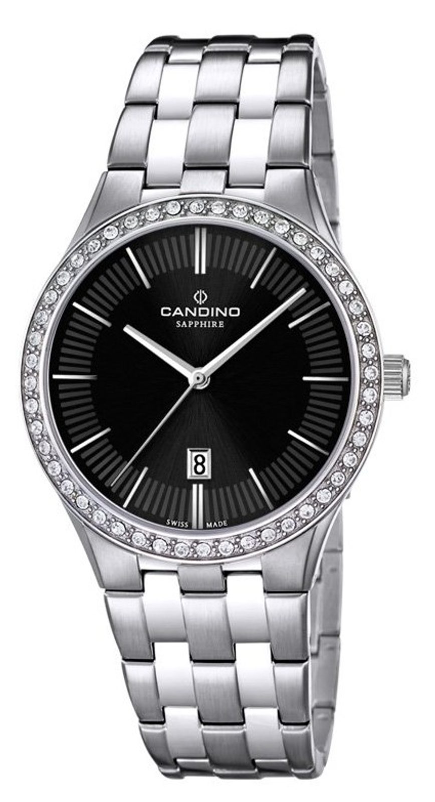 Luxusný vzhľad hodinkám dodáva puzdro a strojček z nehrdzavejúcej ocele. Po obvode puzdra sú vsadené trblietavé kamienky. Praktický ukazovateľ dátumu sa nachádza na pozícii 6. Čierny ciferník dopĺňajú luminiscenčné ručičky. To všetko je chránené zafírovým sklíčkom, ktoré je mimoriadne odolné proti poškriabaniu.