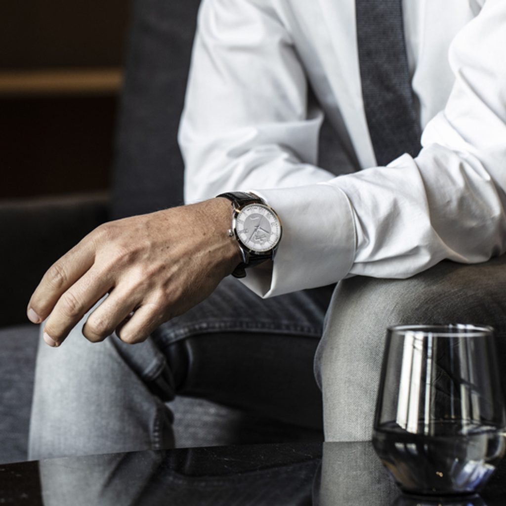 Puzdro hodiniek je vyrobené z nehrdzavejúcej ocele. Vo vnútri sa nachádza švajčiarsky strojček poháňaný batériou. Prehľadný ciferník dopĺňajú rímske číslice a zlaté ručičky s luminiscenciou. Praktická dátumovka sa nachádza na tradičnej pozícii 3. To všetko chráni zafírové sklíčko, ktoré je mimoriadne odolné proti poškriabaniu.