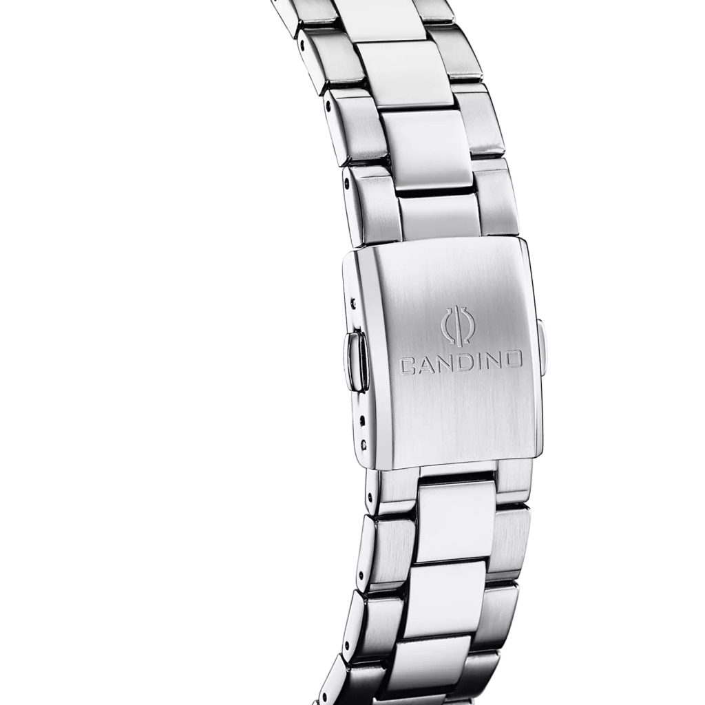 Vo vnútri hodiniek pracuje švajčiarsky quartzový strojček Ronda 515, ktorý je známy svojou presnosťou a odolnosťou. Hodinky dopĺňa 19,8 mm široký oceľový náramok s mikroreguláciou, ktorý dokonale ladí s puzdrom. Model má vodotesnosť 100 m (10 ATM), takže bez problémov zvládne sprchovanie, dážď aj bežný kontakt s vodou.