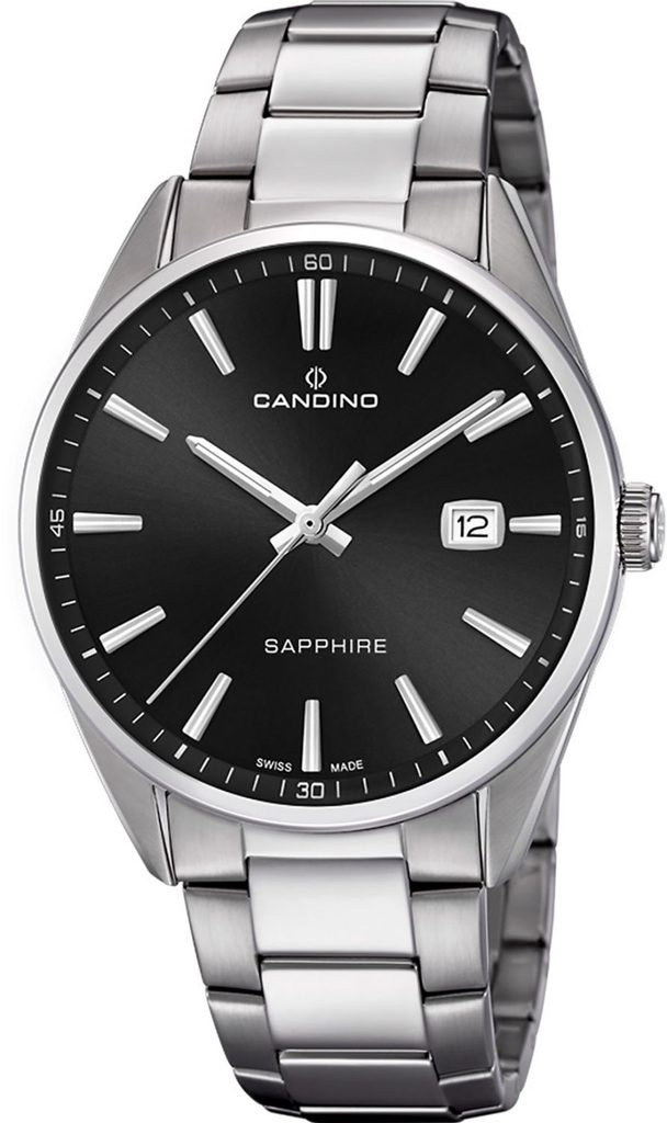 Puzdro hodiniek Candino Gents Classic Timeless C4621/D je vyrobené z ušľachtilej ocele. Vo vnútri sa nachádza švajčiarsky strojček Ronda 715 poháňaný batériou. Ručičky a indexy sú potiahnuté luminiscenčnou vrstvou pre lepšiu čitateľnosť za zhoršených svetelných podmienok. Všetko chráni zafírové sklíčko odolné voči poškriabaniu.