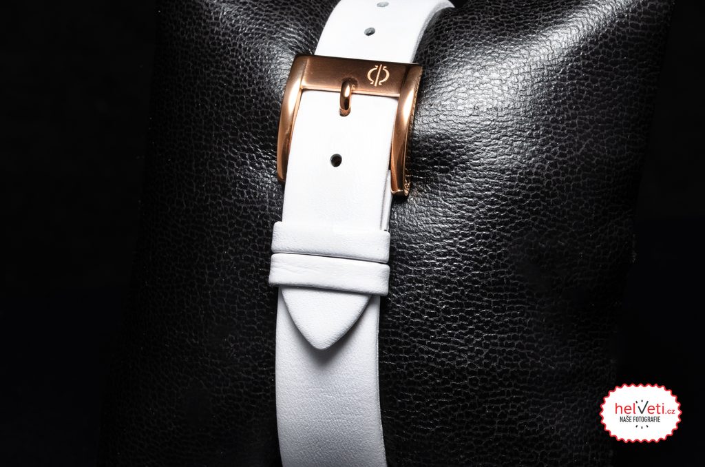 Vodotesnosť 5 ATM udáva, že hodinkám neublíži dážď, umývanie rúk či večerná sprcha. Hodinky sú doplnené príjemným koženým remienkom, ktorý podčiarkuje jemnosť tohto modelu.