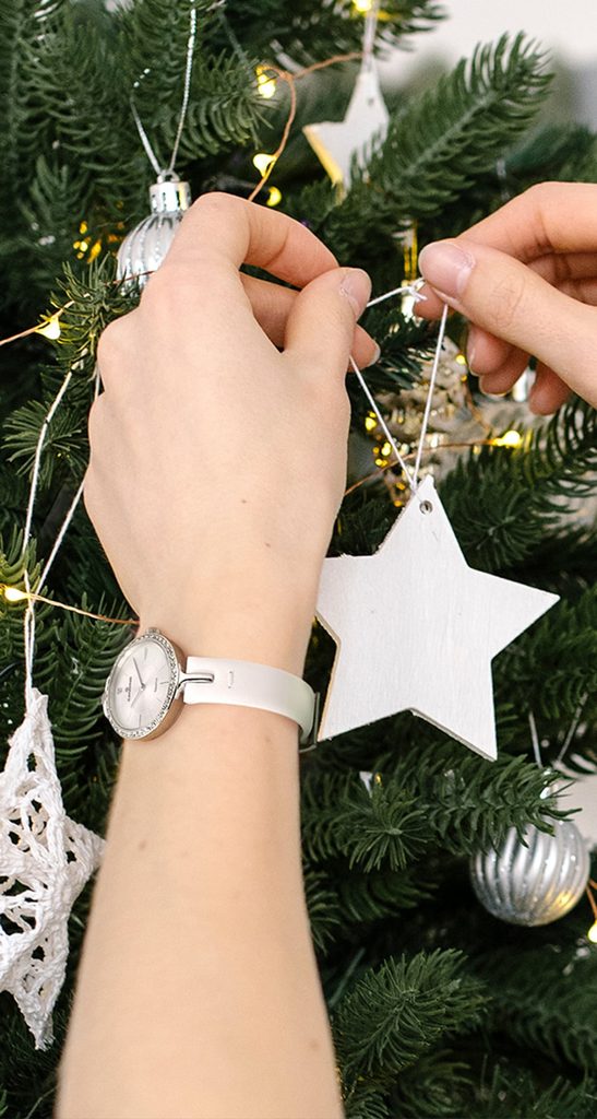 Puzdro hodiniek je vyrobené z nehrdzavejúcej ocele. Vo vnútri sa nachádza švajčiarsky strojček M762 poháňaný batériou. Strieborný ciferník je jemne zdobený štýlovými ručičkami a indexmi. Všetko chráni zafírové sklíčko, ktoré je mimoriadne odolné proti poškriabaniu. Luneta hodiniek je zdobená trblietavými kamienkami.