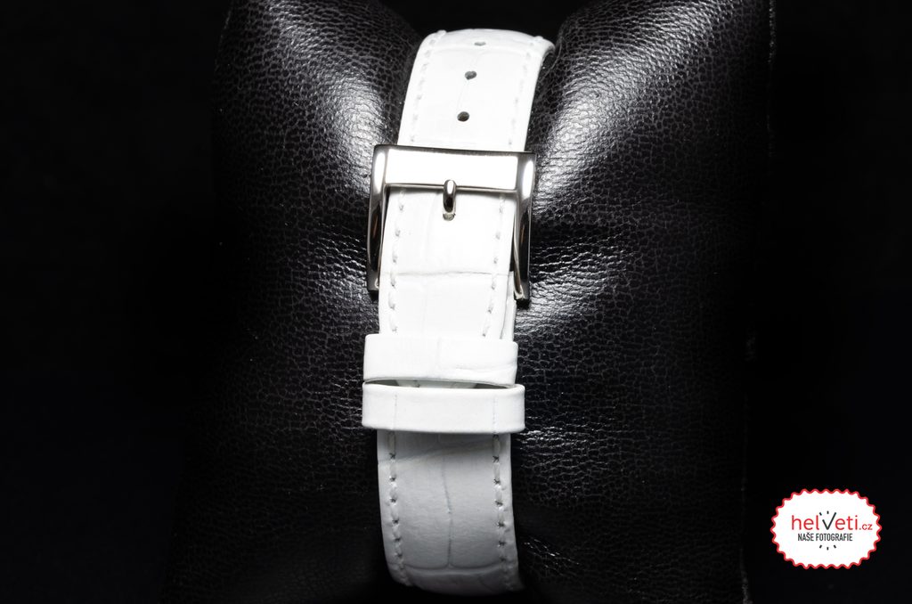 Hodinky sú doplnené príjemným koženým remienkom, ktorý podčiarkuje jemnosť tohto modelu.