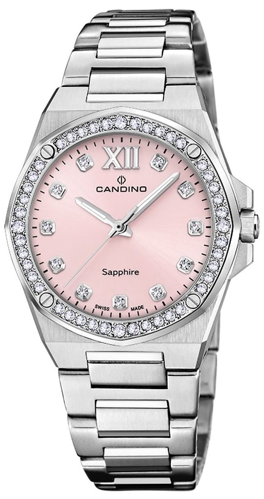 Jedinečné dámske hodinky Candino Lady Elegance C4751/4 sú novým prírastkom do kolekcie Elegance. Hodinky sa vyznačujú novým atypickým tvarom puzdra, ktoré je po obvode zdobené trblietavými kamienkami. Novinkou je aj integrovaný oceľový remienok.