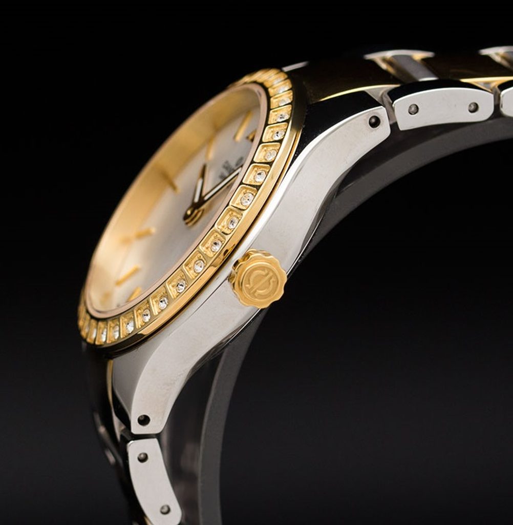 Luxusný vzhľad hodiniek udáva puzdro a strojček z zlatej nehrdzavejúcej ocele s PVD úpravou v dvojfarebnom vyhotovení. Okrem toho sú zlaté ručičky luminiscenčné. Strieborný ciferník je chránený safírovým sklíčkom, ktoré je mimoriadne odolné proti poškriabaniu. Okrem toho sa v hodinkách ukrýva batéria švajčiarsky strojček. Vodotesnosť 5 ATM zaručuje, že hodinkám neublíži dážď, umývanie rúk ani večerná sprcha.