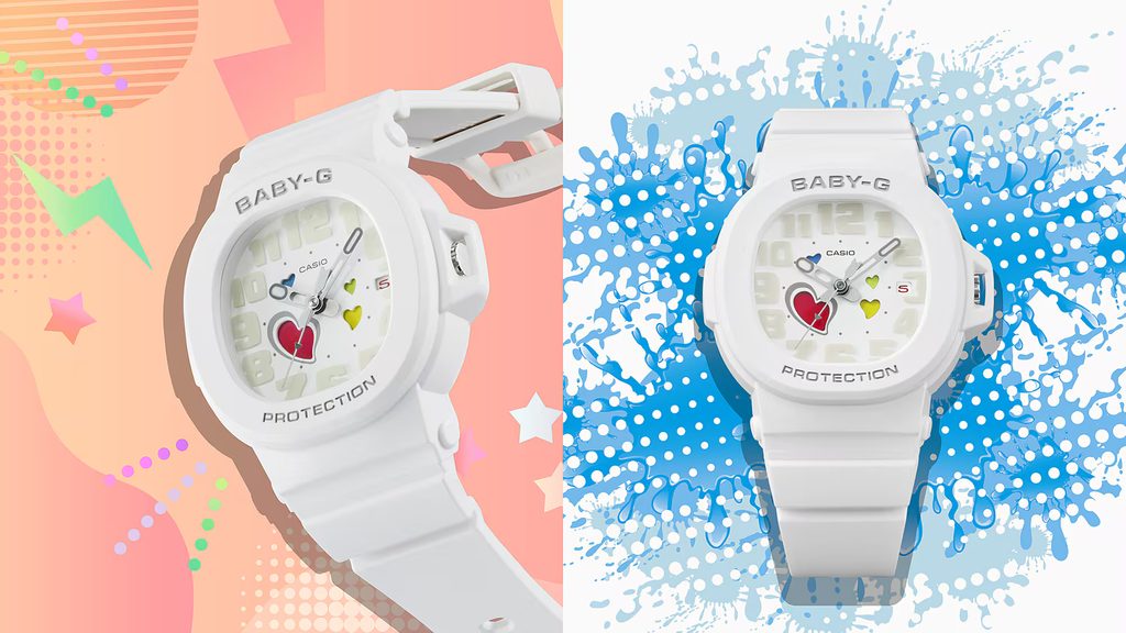 Casio Baby-G BGA-10-7AER sú kúskom zo série Playful Hearts, ktorá sa rozhodla svoje modely ozvláštniť hravými detailmi v podobe srdiečok meniacich farbu, výrazných číslic a netradičnej sekundovej ručičky. Puzdro je chránené špeciálnym, ľahko odnímateľným krytom.
