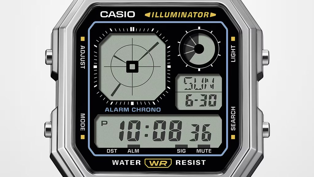 Digitálny displej v ľavom hornom rohu neustále zobrazuje čas, a to aj pri používaní funkcií, ako sú stopky, odpočet atď. Hodinky sú nabité praktickými funkciami, ako je LED podsvietenie, stopky, budík, a majú aj dostatočnú vodotesnosť na každodenné používanie.