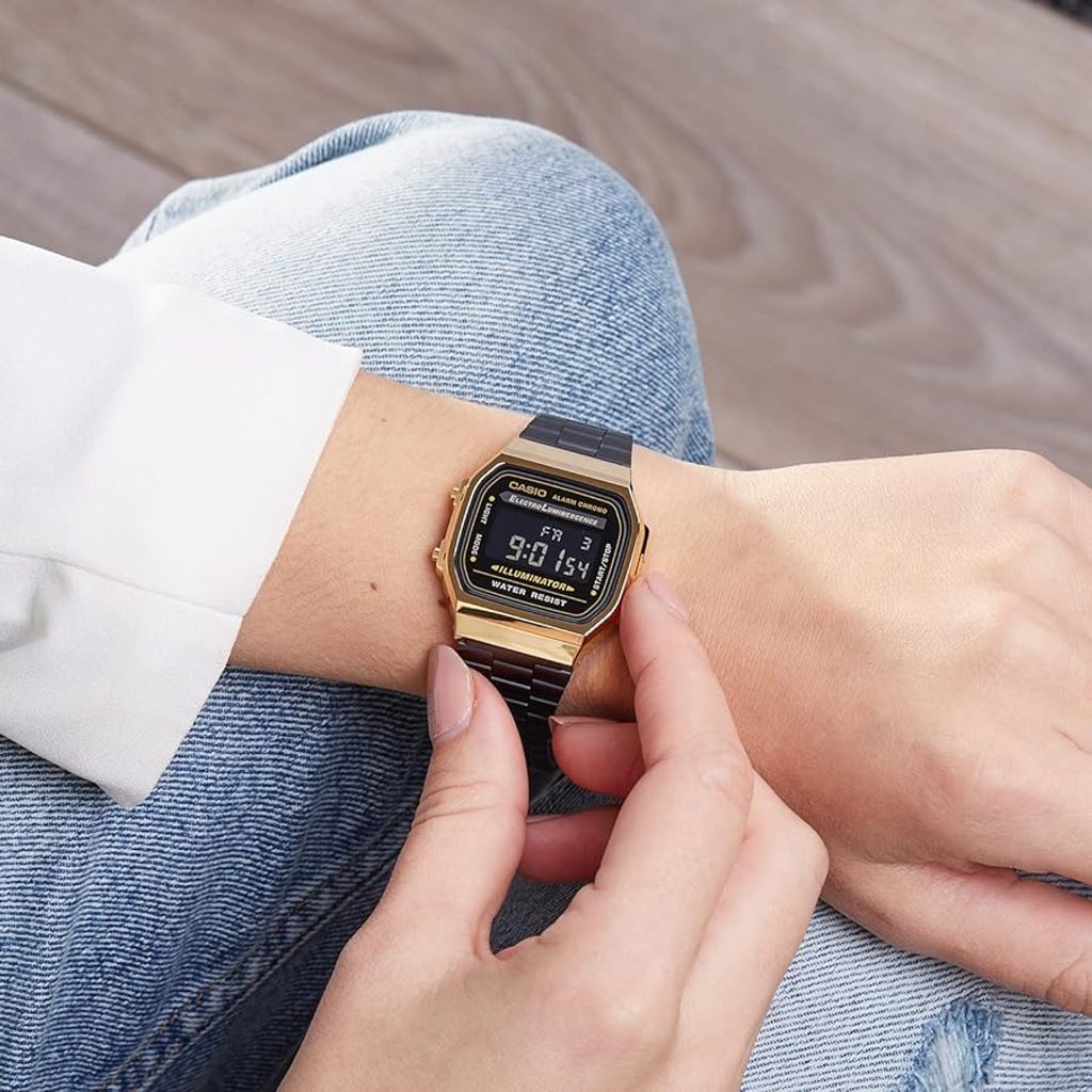 Hodinky Casio Collection Vintage A168WEGB-1BEF sú vďaka svojmu retro dizajnu vhodnou voľbou pre mužov aj ženy. Ide o rokmi overený a obľúbený model s digitálnym ciferníkom a množstvom užitočných funkcií.