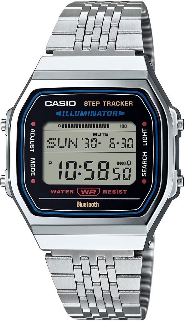 Casio ABL-100WE-1AEF zo série Vintage Colection sú vďaka svojmu retro dizajnu vhodnou voľbou pre mužov aj dámy. Ide o rokmi overený a obľúbený model s digitálnym displejom a užitočnými funkciami, teraz aj s krokomerom a možnosťou pripojenia k telefónu cez Bluetooth.