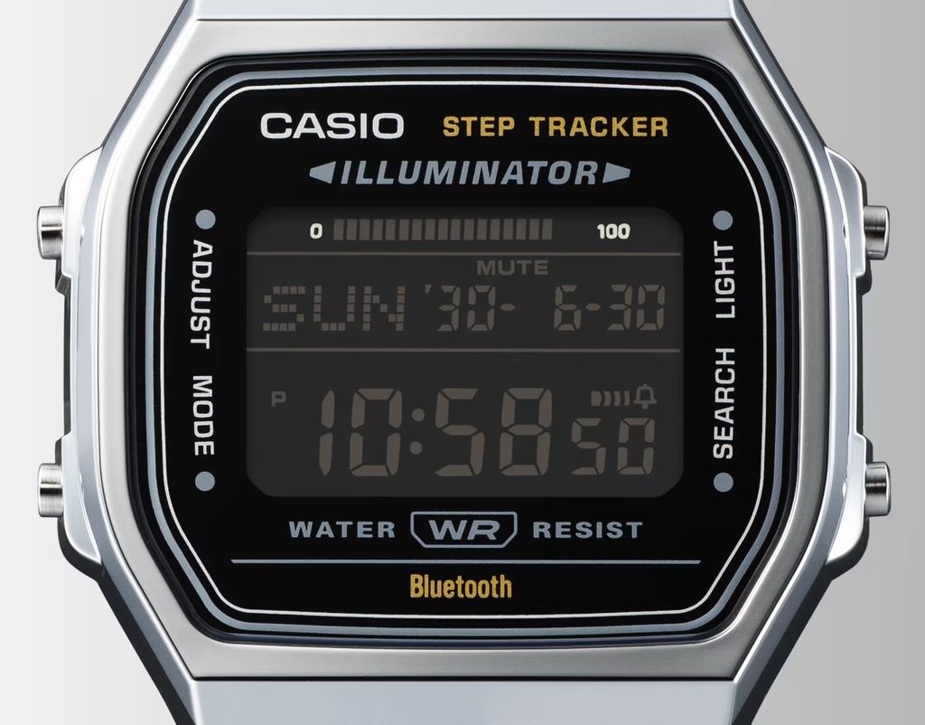 Casio ABL-100WE-1BEF zo série Vintage Colection sú vďaka svojmu retro dizajnu vhodnou voľbou pre mužov aj dámy. Ide o rokmi overený a obľúbený model s digitálnym displejom a užitočnými funkciami, teraz aj s krokomerom a možnosťou pripojenia k telefónu cez Bluetooth.