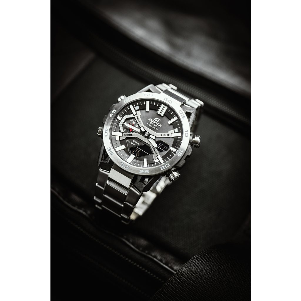 Hodinky Casio Edifice ECB-2000D-1AEF sú pánske športové hodinky s kombinovaným analógovým a digitálnym ciferníkom a množstvom užitočných funkcií, ktoré sú zabalené v atraktívnom, moderne vyzerajúcom puzdre, ktoré je po novom kombináciou uhlíka a ocele.
