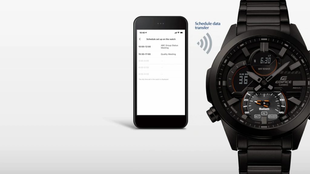 HodinkyCasio Ediface ECB 30P-1A majú kombinovaný ciferník (analógový a digitálny) a kladú dôraz na dobrú prehľadnosť a jednoduché používanie, aby ste mohli naplno využívať všetky funkcie, ktoré ponúkajú. Medzi najdôležitejšie nepochybne patrí možnosť synchronizácie hodiniek so smartfónom prostredníctvom technológie Bluetooth. Pripojenie v spojení s použitím príslušnej aplikácie (CASIO WATCHES) umožňuje mať vždy pod kontrolou aktuálny a presný čas, ponúka možnosť jednoduchého nastavenia dátumu, dňa, duálneho času výberom jedného z 38 časových pásiem, nastavenie až piatich denných alarmov. S hodinkami môžete merať a počítať až 24-hodinové intervaly. Medzi ďalšie užitočné funkcie patrí Vyhľadávač telefónu- po stlačení tlačidla hodiniek telefón zazvoní a vy ho môžete ľahšie nájsť.
