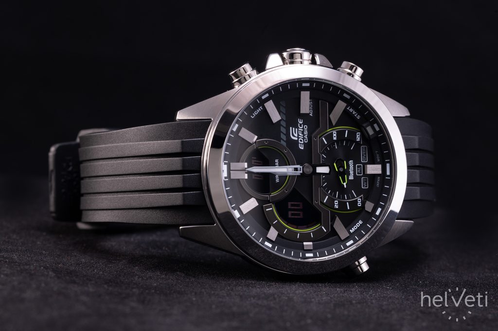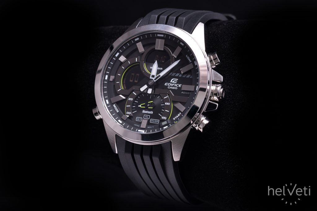 Hodinky Casio Edifice ECB-30P-1AEF sú spojením hodinárskeho a motoristického sveta, ich dizajn v sebe spája dynamiku, vášeň pre rýchlosť a pretekársku vášeň. Hodinky majú kombinovaný analógový a digitálny ciferník, množstvo užitočných funkcií a sú zabalené v atraktívnom, moderne vyzerajúcom puzdre. Možno ich prepojiť s mobilným telefónom, takže sú ideálnym spoločníkom na každodenné používanie.