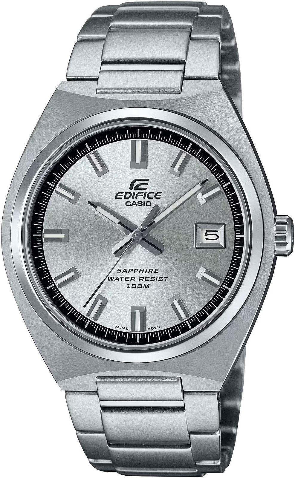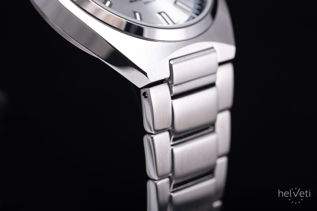 Strieborný, kovovo vyzerajúci ciferník s brúseným efektom zaujme na prvý pohľad. Má hodinové pozície osadené reliéfnymi indexmi a tmavý povrch príjemne narúša farebná sekundová ručička. Chráni ho zafírové sklíčko s vysokou odolnosťou proti poškriabaniu. Puzdro hodiniek je vyrobené z ušľachtilej ocele a zaujme svojím výbrusom, ktorý prechádza od okrajov do stredu puzdra. Dopĺňa ho oceľový náramok ukončený skladacou sponou. Hodinky sú vybavené ukazovateľom dátumu na pozícii 3 hodín. Prednosťou hodiniek je ich vynikajúca prehľadnosť vďaka použitiu výrazných indexov a ručičiek. Ručičky a indexy hodín sú potiahnuté luminiscenčnou vrstvou, ktorá zabezpečuje lepšiu čitateľnosť za zhoršených svetelných podmienok. Vodotesnosť hodiniek je 100 m - bez problémov teda zvládnu plávanie. Vďaka priemeru puzdra 38,5 mm sa zaraďujú medzi menšie hodinky, ktoré môžu byť vhodné nielen pre pánov, ale aj pre dámy.