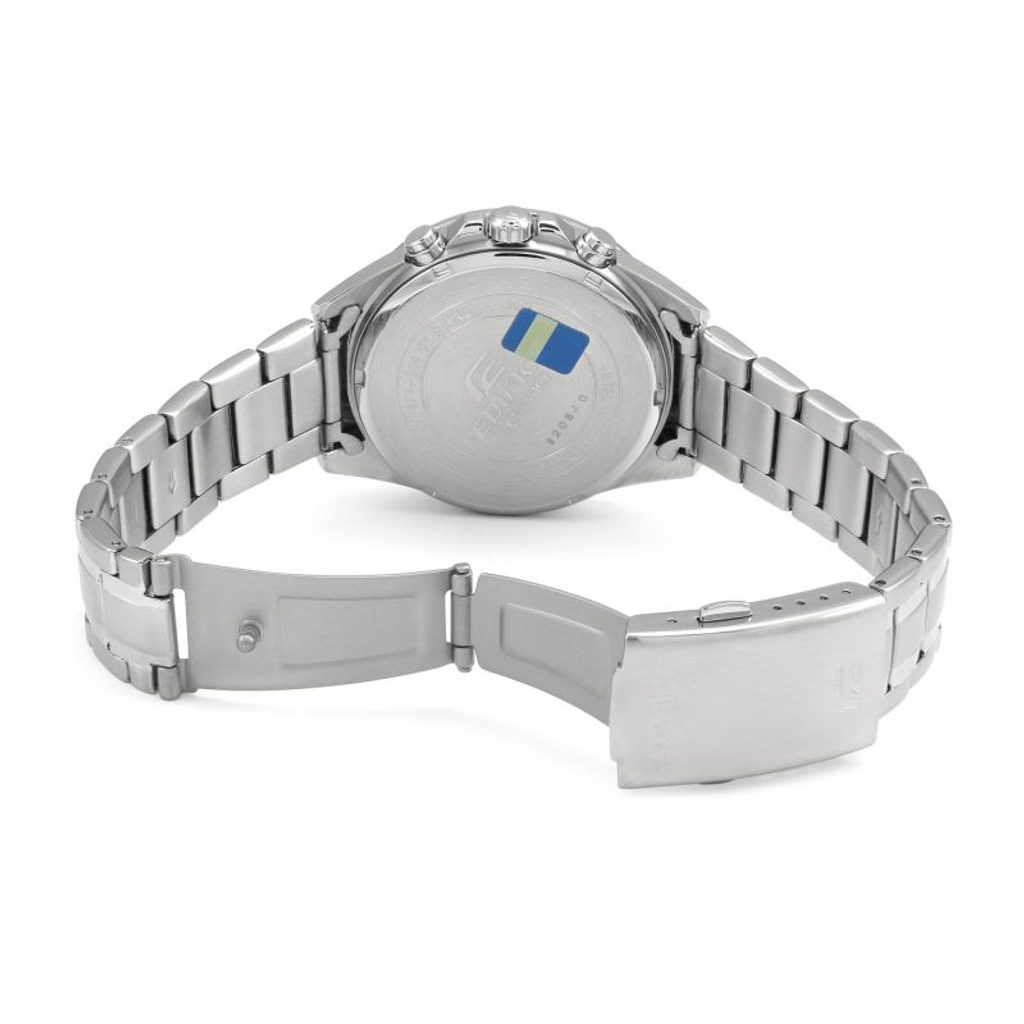 HodinkyCasio Edifice EFV 580D-1A sú vybavené ukazovateľom dátumu na pozícii pol piatej a funkciou chronografu, ktorej chod zobrazujú prehľadné subciferníky - minútový a sekundový. Stopky možno ovládať bočnými tlačidlami - horné stopky spúšťa a zastavuje, dolné vynuluje namerané hodnoty - tie možno odčítať na subciferníkoch na pozícii 6 (sekundy) a 9 (minúty). Subciferník na pozícii 3 ponúka zobrazenie 24-hodinového času. S hodinkami možno merať intervaly po 10 minútach. Puzdro a náramok hodiniek sú vyrobené z nehrdzavejúcej ocele. Čierny ciferník s výraznými ručičkami a indexmi je chránený minerálnym sklíčkom. Lepšiu čitateľnosť za zhoršených svetelných podmienok zabezpečuje aplikácia luminiscenčnej vrstvy na ručičky hodiniek. Vodotesnosť tohto modelu je100 m - s hodinkami teda môžete bez obáv plávať. Vďaka priemeru puzdra 43,8 mm ide o veľké hodinky.