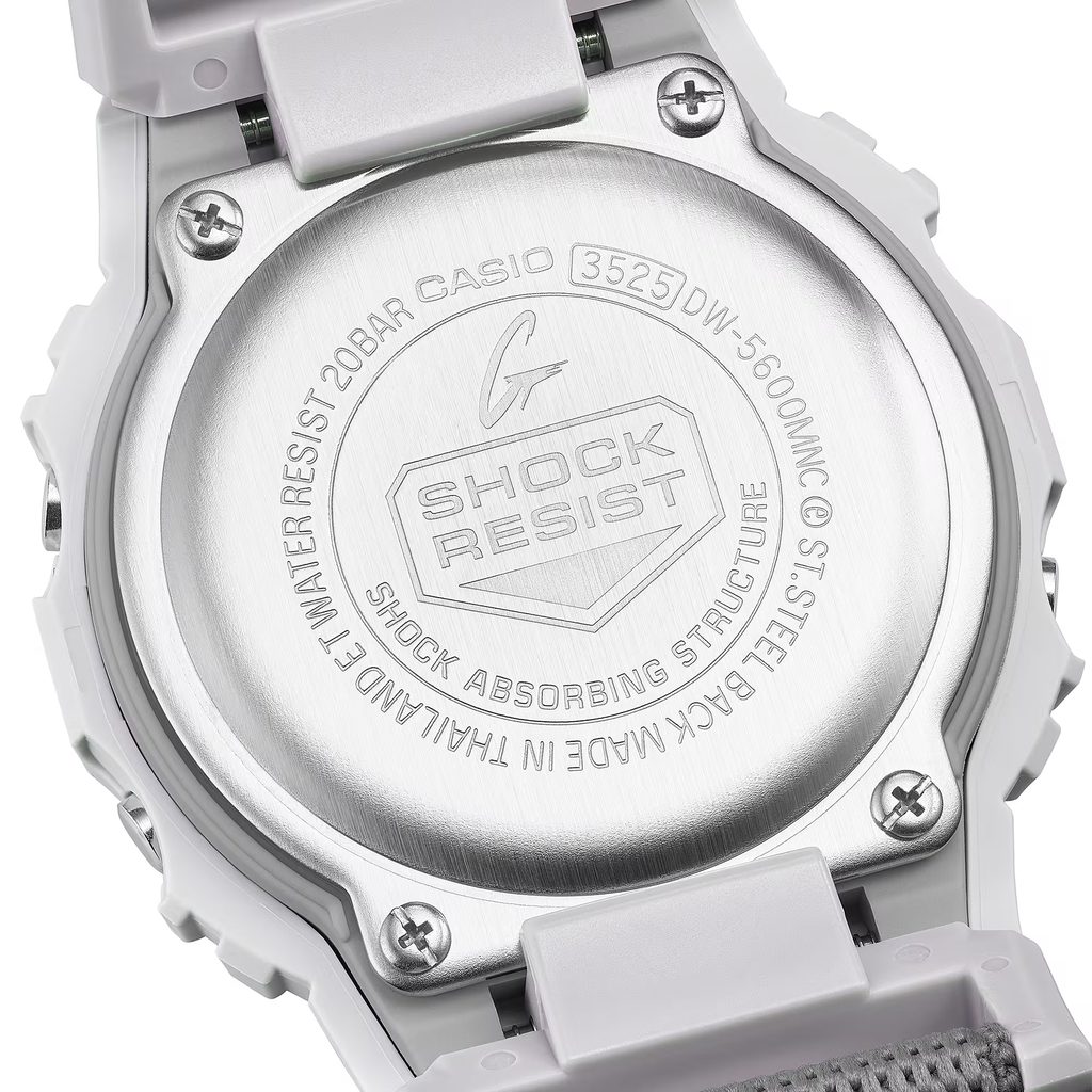 Modely Casi G-Shock DW-5600MNC sa dodávajú s novým typom textilného remienka, ktorý posúva komfort nosenia na vyššiu úroveň. Remienok je flexibilný, vďaka čomu sa dokonale prispôsobí zápästiu. Praktickou funkciou je systémová pracka FIDLOCK®, ktorá kombinuje magnetické a mechanické zapínanie. Dá sa rýchlo a bezpečne zapnúť a odopnúť jednou rukou.