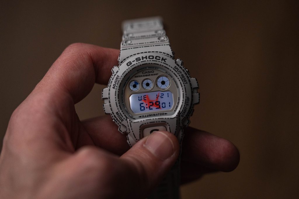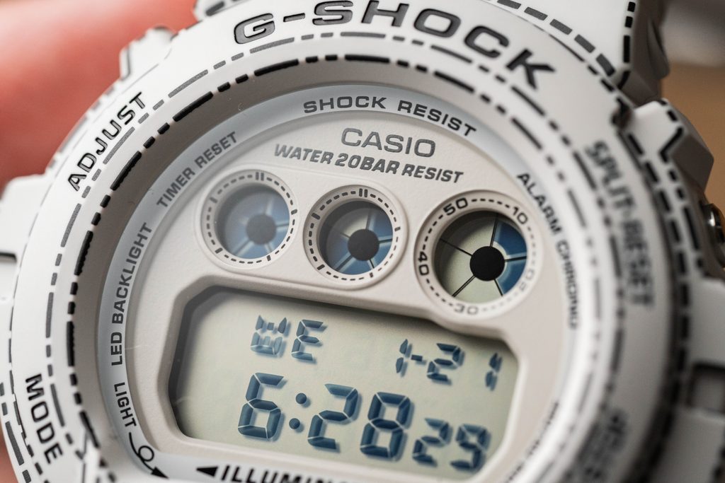 Casio G-Shock DW 6900RGM-5 majú pozitívny digitálny displej, ktorý ponúka dátum, deň v týždni, stopky, alarm a ďalšie praktické funkcie. Displej je chránený minerálnym sklom. Pre ľahkú čitateľnosť za zhoršených svetelných podmienok sú hodinky vybavené LED osvetlením displeja. Zaujímavou funkciou je, že displej sa rozsvieti pri spustení budíka, odpočítavaní, signalizácii hodín atď.