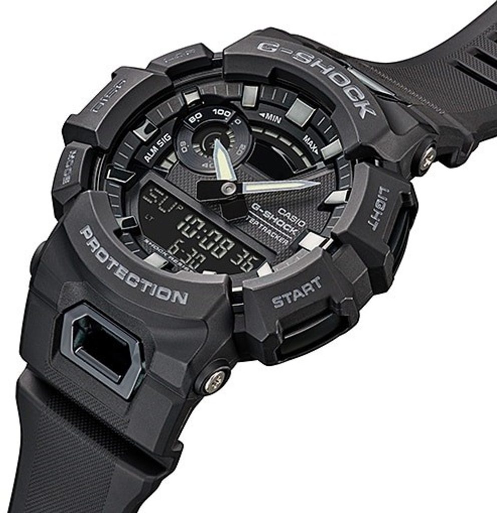 Casio G-Shock GBA 900-1A majú kombinovaný ciferník (analógový a digitálny), ktorý zobrazuje dátum, deň v týždni, stopky, budík a mnohé ďalšie funkcie. Už štandardom je zabudovaný pedometer a možnosť pripojenia k telefónu cez bluetooth, takže môžete ľahko sledovať svoju dennú aktivitu. Puzdro hodiniek vrátane remienka je gumové. Ciferník je chránený minerálnym sklom. Luminiscenčná vrstva na ručičkách zaisťuje lepšiu čitateľnosť za zhoršených svetelných podmienok a hodinky sú vybavené dvojitým LED osvetlením displeja (Super Illuminator). Priemer puzdra 48,9 mm ho radí medzi väčšie hodinky. Vodotesnosť tohto modelu je 200 m, takže s hodinkami môžete bez problémov plávať.