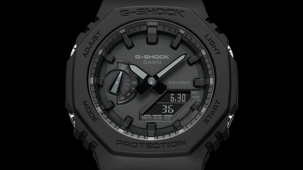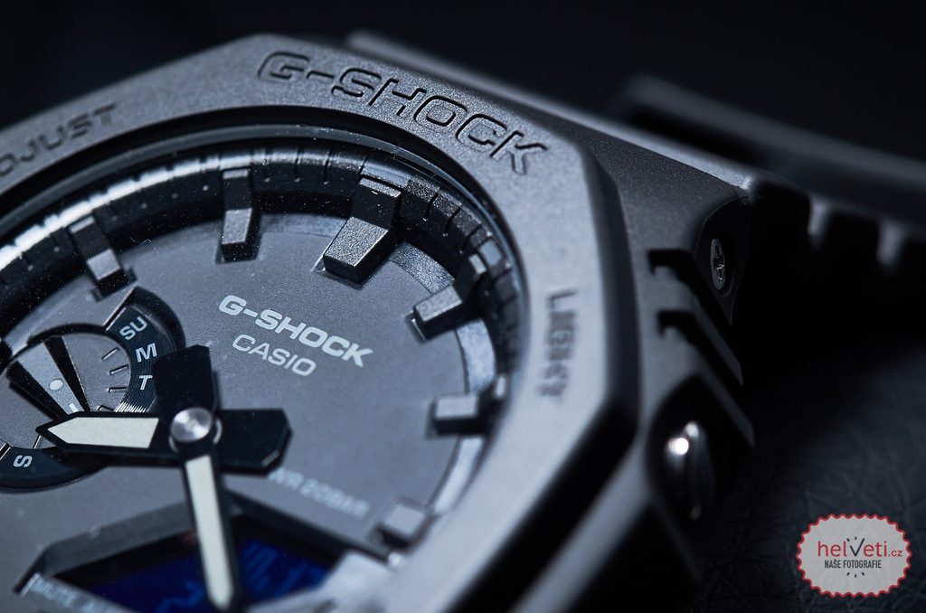 Casio G-Shock GA 2100-1A1 prichádzajú, ako už sme pri rade zvyknutí, so spracovaním, vďaka ktorému hodinky obstoja aj vystavení sťaženým podmienkam. Vysoká odolnosť puzdra je zaistená novou konštrukciou Carbon Core Guard. To je vyrobené zo živice, vystužené a spevnené uhlíkovými vláknami, špeciálna je aj konštrukcia tlačidiel, chrániaca model pred prienikom nečistôt. Spomínaná kombinácia dovoľuje vytvoriť kompaktnejší a ľahší celok.
