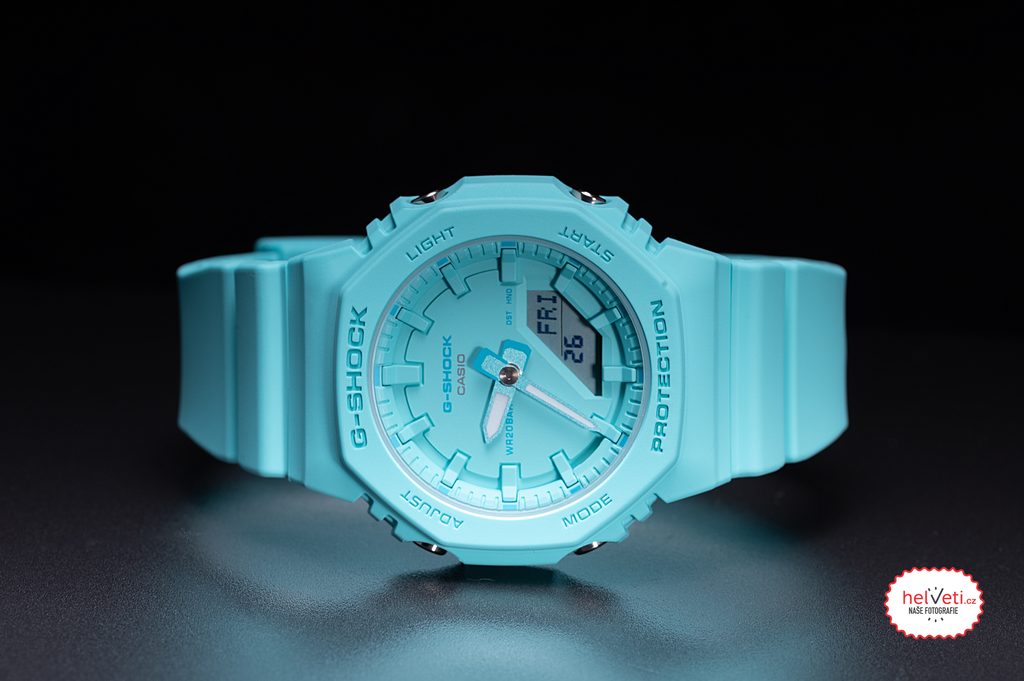 Casio G-Shock GA 2100-2A2 Tone-on-Tone sú odeté do obľúbenej tyrkysovej farby. Patrí do trojice modelov v jednofarebnom prevedení. Ďalšie dva modely sú odeté do fosforovo žltej a bielej farby. Puzdro, remienok a dokonca aj jednotlivé komponenty ciferníka sú vyhotovené v jemne odlišných odtieňoch rovnakej farby. Napriek mestskému zameraniu kolekcie remeselné spracovanie hodiniek obstojí aj pri vystavení drsným podmienkam. Vysokú odolnosť puzdra zabezpečuje konštrukcia Carbon Core Guard. Tá je vyrobená zo živice, vystužená a spevnená uhlíkovými vláknami, špeciálna je aj konštrukcia gombíkov, ktoré chránia model pred vniknutím nečistôt. Uvedená kombinácia umožňuje vytvoriť kompaktnejší a ľahší prístroj.