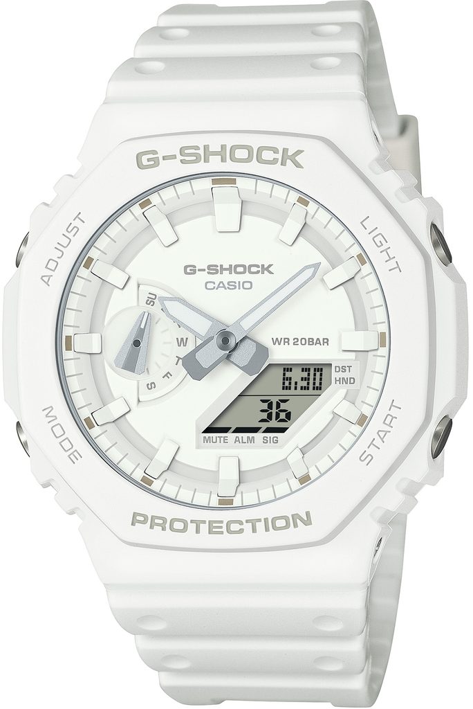 Casio G-Shock GA-2100-7A7ER Tone-on-Tone s konštrukciou Carbon Core Guard sú prírastkom do obľúbenej série GA-2100, ktorá má osemhranné puzdro.