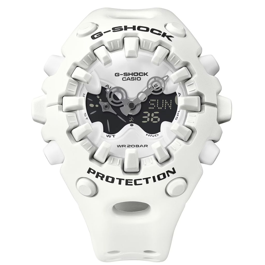 Casio G-Shock GA-V01-7AER sú novým športovým modelom rozširujúcim rad G-Shock. Model GA-V01 má organický tvar s ostro ohraničenými hranami v kombinácii s nezvyčajnými výrezmi pre LCD displej a za zmienku stoja aj vrúbkované ručičky na uvoľnenie nárazu. Vďaka nápadne inovatívnemu a originálnemu konceptu dizajnu vyžaruje model GA-V01 odolnosť typickú pre značku G-SHOCK a potvrdzuje zameranie značky na výzvy.