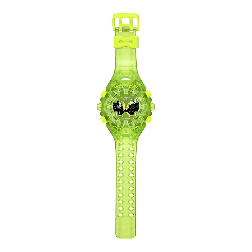 Casio G-Shock GA-V01SKE-3AER sú novým športovým modelom rozširujúcim rad G-Shock. Model GA-V01 má organický tvar s ostro ohraničenými hranami v kombinácii s nezvyčajnými výrezmi pre LCD displej a za zmienku stoja aj vrúbkované ručičky na uvoľnenie nárazu. Vďaka nápadne inovatívnemu a originálnemu konceptu dizajnu vyžaruje model GA-V01 odolnosť typickú pre značku G-SHOCK a potvrdzuje zameranie značky na výzvy.