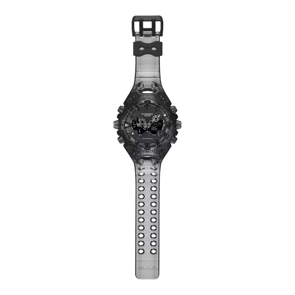 Casio G-Shock GA-V01SKE-8AER sú novým športovým modelom rozširujúcim rad G-Shock. Model GA-V01 má organický tvar s ostro ohraničenými hranami v kombinácii s nezvyčajnými výrezmi pre LCD displej a za zmienku stoja aj vrúbkované ručičky na uvoľnenie nárazu. Vďaka nápadne inovatívnemu a originálnemu konceptu dizajnu vyžaruje model GA-V01 odolnosť typickú pre značku G-SHOCK a potvrdzuje zameranie značky na výzvy.