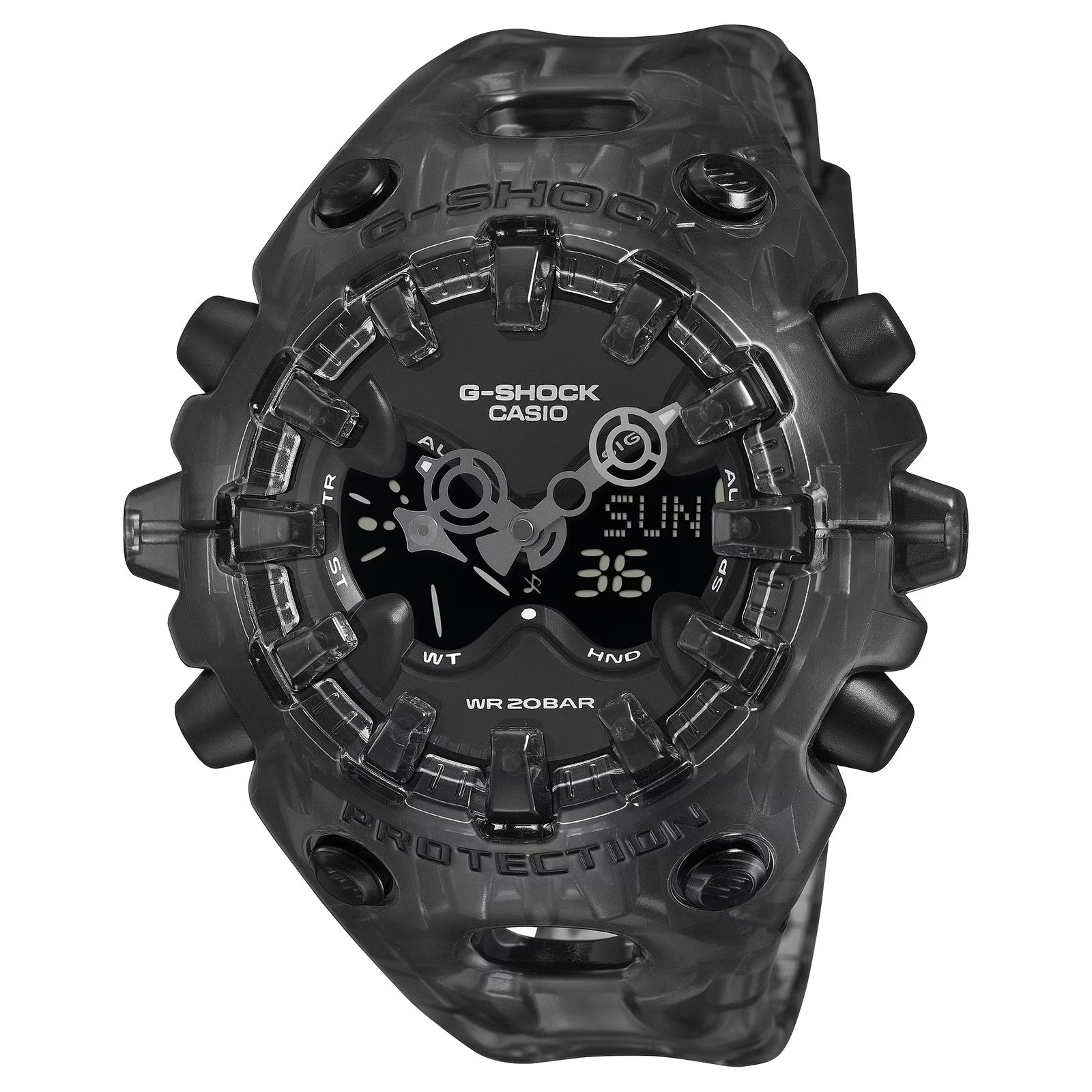 Výrazné živicové polopriehľadné puzdro hodiniek dopĺňa živicový remienok, ktorý vyniká vysokou odolnosťou a dlhou životnosťou. Použité materiály pomohli udržať nízku hmotnosť hodiniek, ktorá je len 74 gramov. Netradičný ciferník je chránený sférickým minerálnym sklíčkom. Pre ľahkú čitateľnosť za zhoršených svetelných podmienok sú hodinky vybavené duálnym LED osvetlením, ktoré po stlačení tlačidla osvetlí analógovú aj digitálnu časť ciferníka. Na digitálnom displeji sa zobrazujú údaje súvisiace s aktuálne zvoleným režimom. S priemerom puzdra 58,2 mm sa hodinky zaraďujú medzi veľké hodinky. Vodotesnosť tohto modelu je 200 m, takže s hodinkami môžete bez problémov plávať. Hodinky potešia dlhou výdržou batérie, ktorá dosahuje až 10 rokov.
