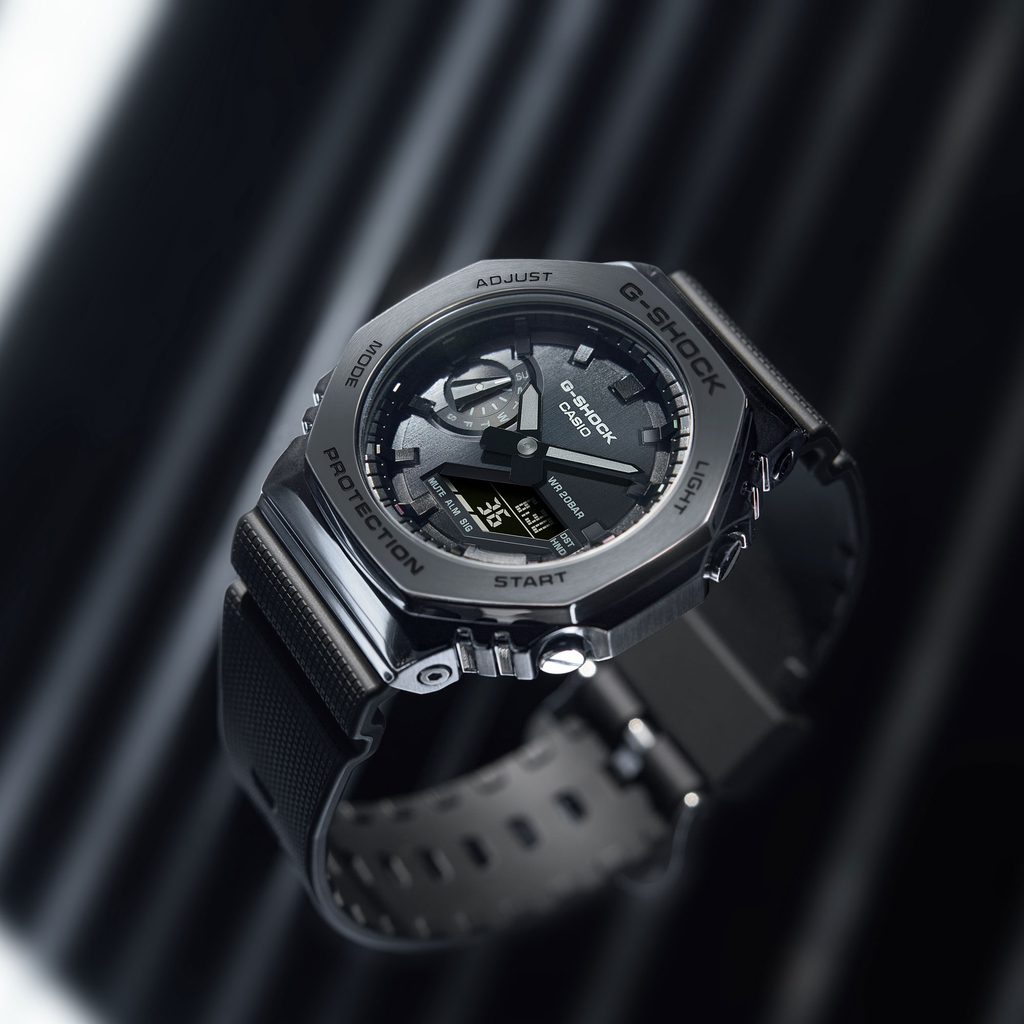 Casio G-Shock GM-2100BB-1AER sú prírastkom do obľúbenej série "CasiOak", ktorá sa vyznačuje osemhranným puzdrom. Novo je vyrobené z ocele a má menší priemer.