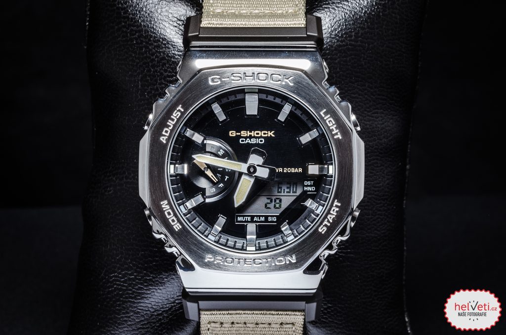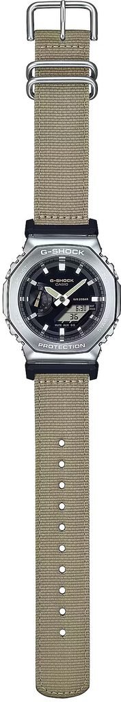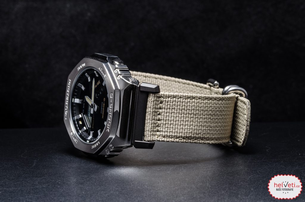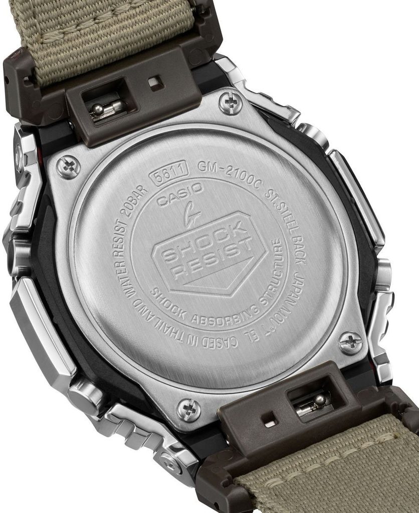 Casio G-Shock GM-2100C-5AER Utility Metal Collection sú prírastkom do obľúbenej série "CasiOak", ktorá má osemhranné puzdro. Novo v kombinácii s textilným remienkom.