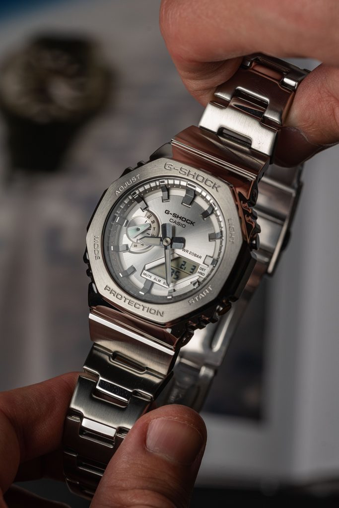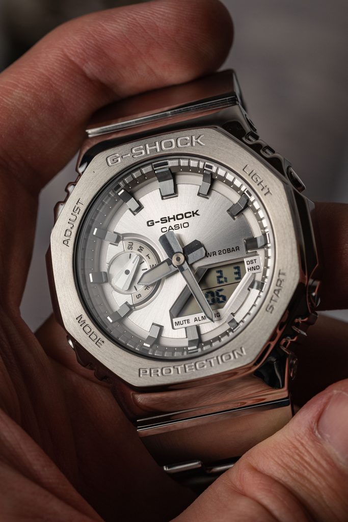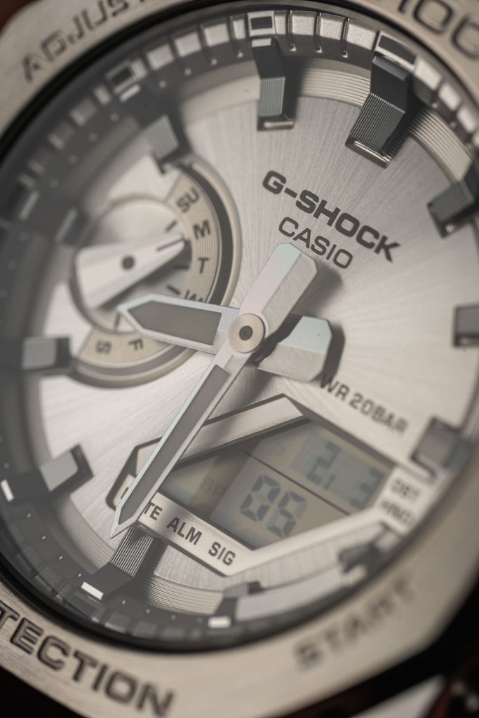 Casio G-Shock GM 2110D-7A prichádzajú, ako sme u tejto série zvyknutí, s kvalitou spracovania, vďaka ktorej vydržia vystavenie náročným podmienkam. Ani s novo spracovaným puzdrom nestráca nič zo svojej vysokej odolnosti (na plastovej základni je kovové puzdro).
