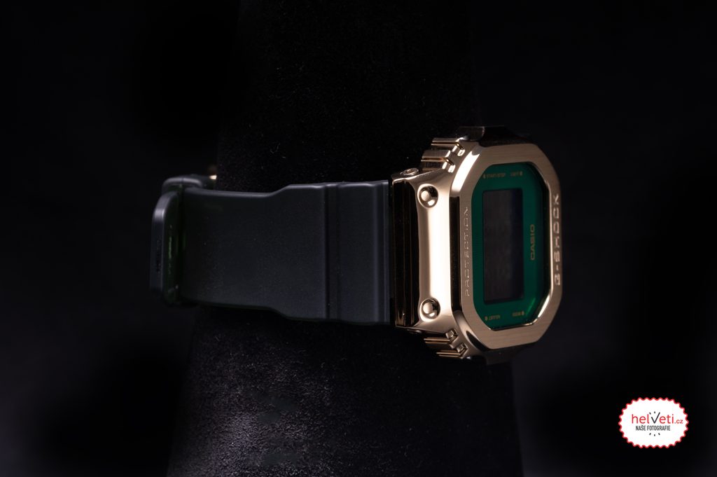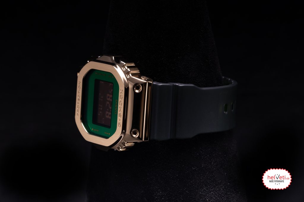 Casio G-Shock GM 5600CL-3 sú novinkou, ktorá sa vyznačuje smaragdovo zelenou farbou, ktorá obklopuje displej, a v rovnakom odtieni je vyhotovený aj remienok hodiniek. Zelenú farbu dokonale dopĺňa zlaté puzdro.