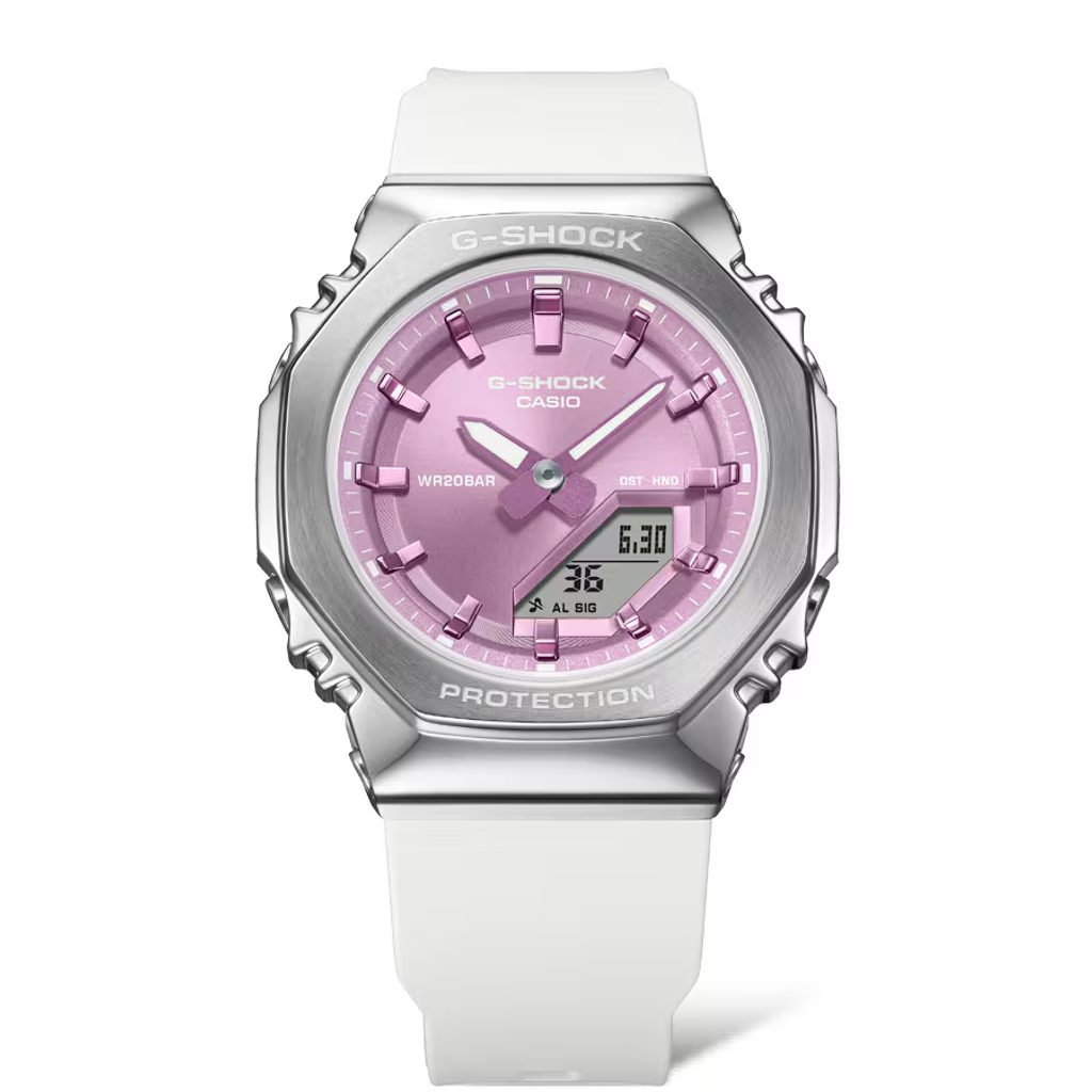 Casio G-Shock GM-S2110-7A6ER sú prírastkom do obľúbenej dámskej línie "CasiOak", ktorá sa vyznačuje osemuholníkovým puzdrom, ktoré prináša kratšie remienky na štíhle dámske zápästia.