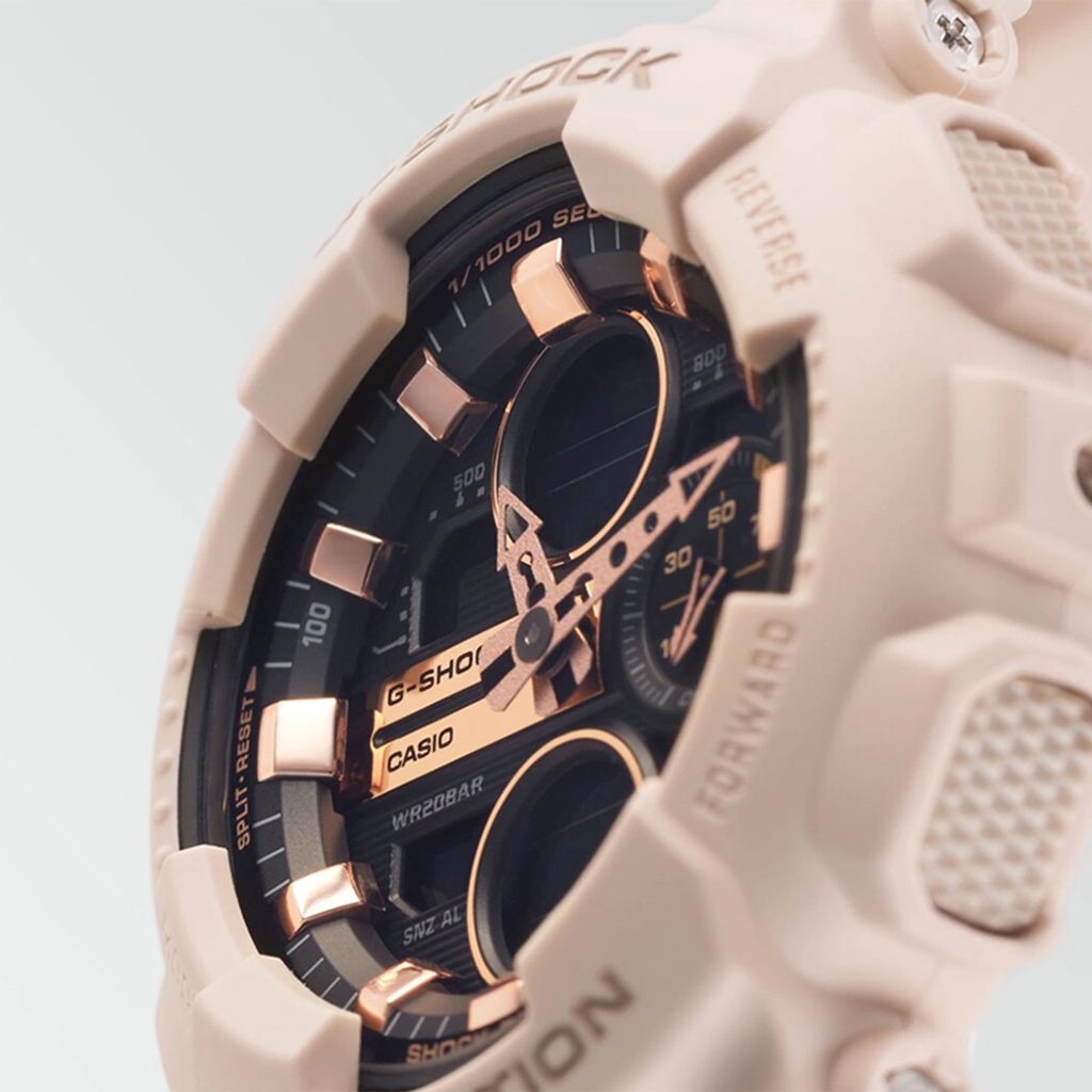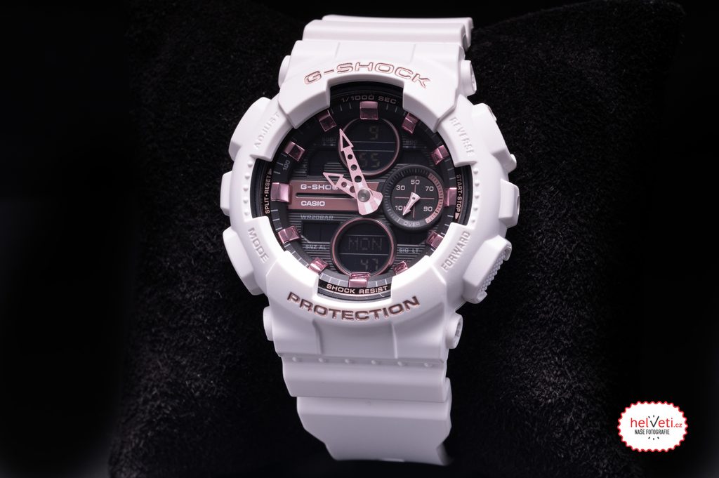 Séria GMA-S140 prenáša klasický vzhľad pánskych modelov Casio G-Shock do menšieho puzdra, čím rozširuje ponuku športových hodiniek nielen pre pánov s menšími zápästiami, ale aj pre dámy. Hodinky Casio G-Shock GMA S140M-4A majú kombinovaný ciferník (analógový a digitálny), ktorý zobrazuje dátum, deň v týždni, stopky , pri ktorých použití dokáže ciferník odčítať aj rýchlosť pohybujúceho sa objektu na vopred známej trati, budík a mnoho ďalších funkcií. Puzdro hodiniek vrátane remienka je gumové. Ciferník je chránený minerálnym sklom. S priemerom puzdra 45,9 mm patria k väčším hodinkám, ale vďaka svojmu tvaru a konštrukcii sa hodia na mnohé zápästia. Vodotesnosť tohto modelu je 200 m, takže s hodinkami môžete bez problémov plávať alebo sa dokonca potápať.