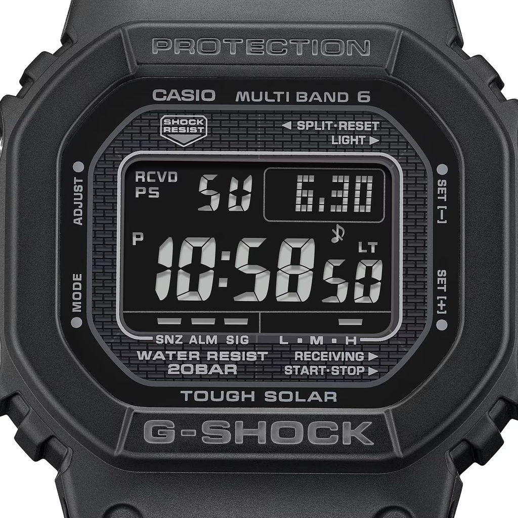 Casio G-Shock GW-5000HS-1ER majú inverzný digitálny displej, ktorý zobrazuje dátum, deň v týždni, stopky, budík a mnoho ďalších funkcií. Základ puzdra hodiniek je oceľový, na vrchnej strane je puzdro zo živice. Puzdro dopĺňa živicový remienok s vynikajúcou odolnosťou a dlhou životnosťou. Kryt puzdra a remienok sú vyrobené z bioživice z obnoviteľných ekologických zdrojov.